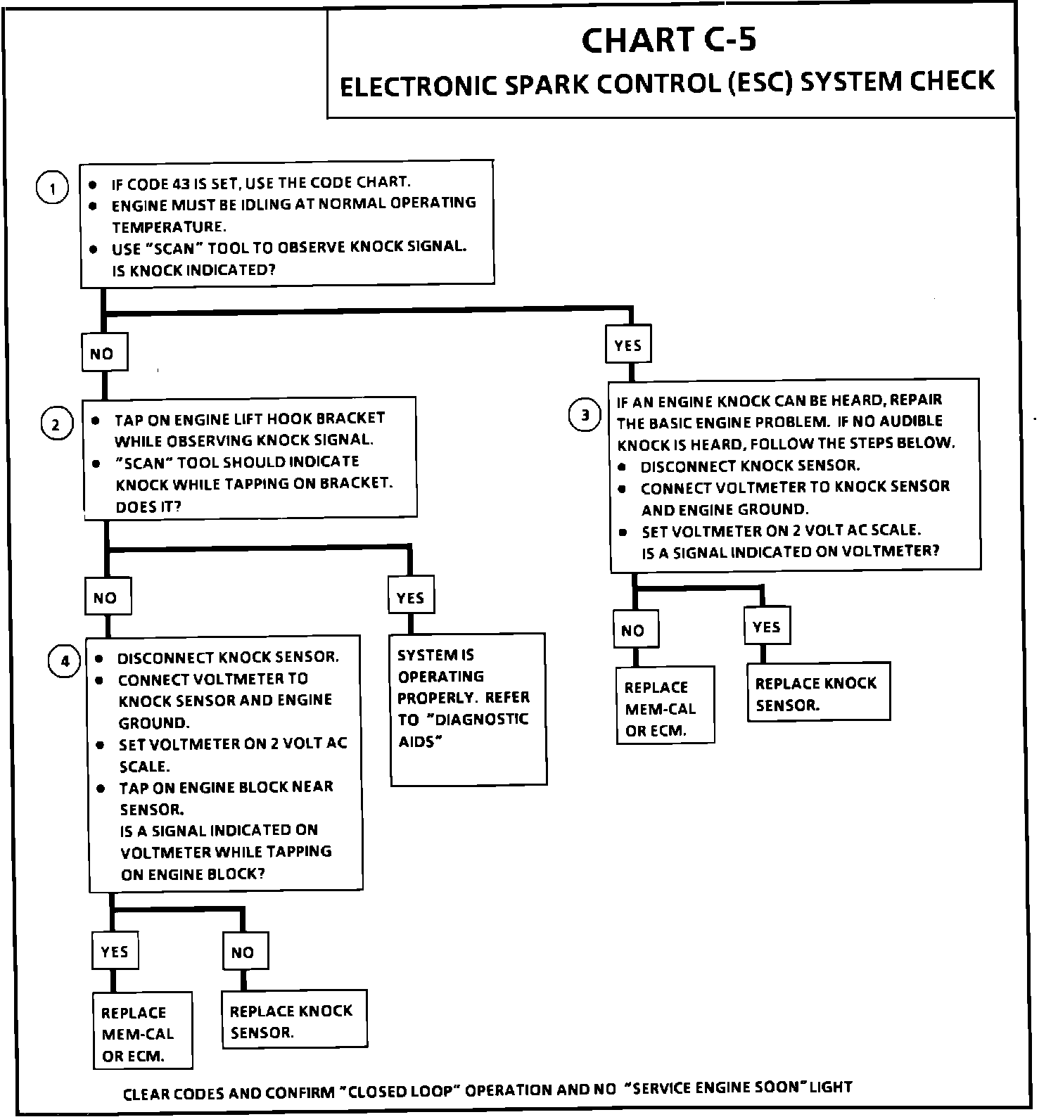 4. This test determines if the knock sensor is faulty or if the ESC portion of the Mem-Cal is faulty. If it is determined that the Mem-Cal is faulty, be sure that is is properly installed and latched into place. If not properly installed, repair and retest.