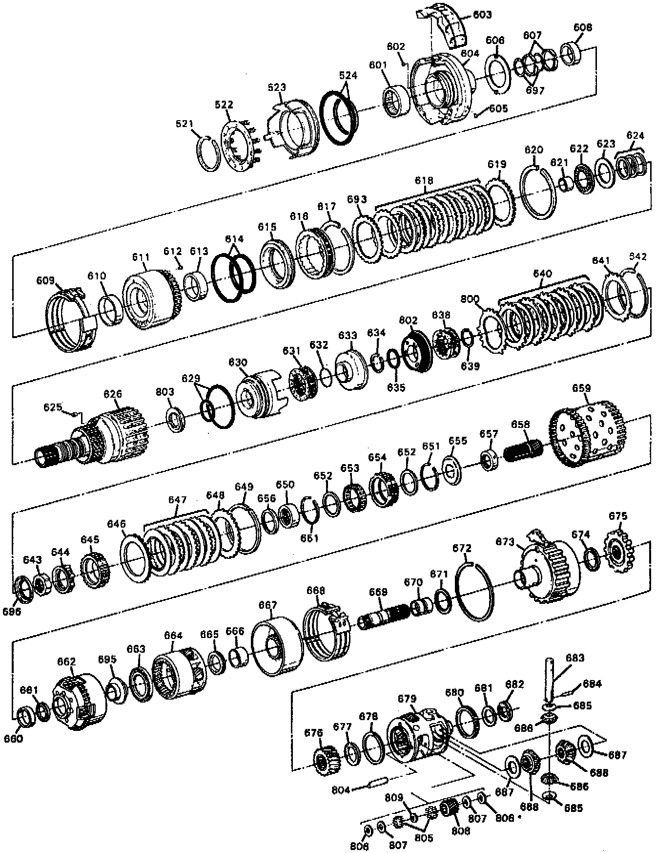 Fig. 17, Exploded view of transaxle internal components (Part 1 of 2). 1990 units: