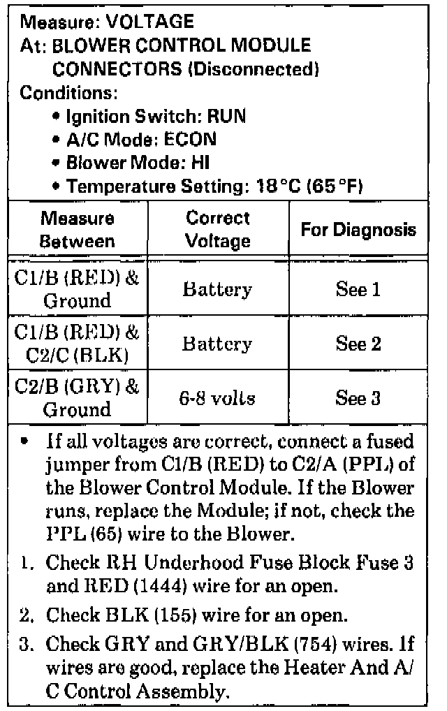 B: Blower Control Module Test: