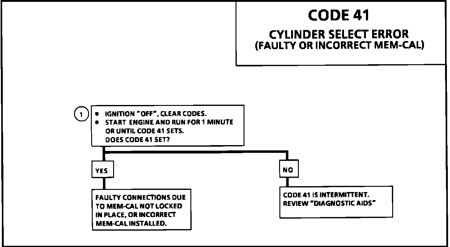 1. The Electronic Control Module (ECM) used for this engine can also be used for other engines, and the difference is in the Mem-Cal. If a Code 41 sets, the incorrect Mem-Cal has been installed or it is faulty and it must be replaced.