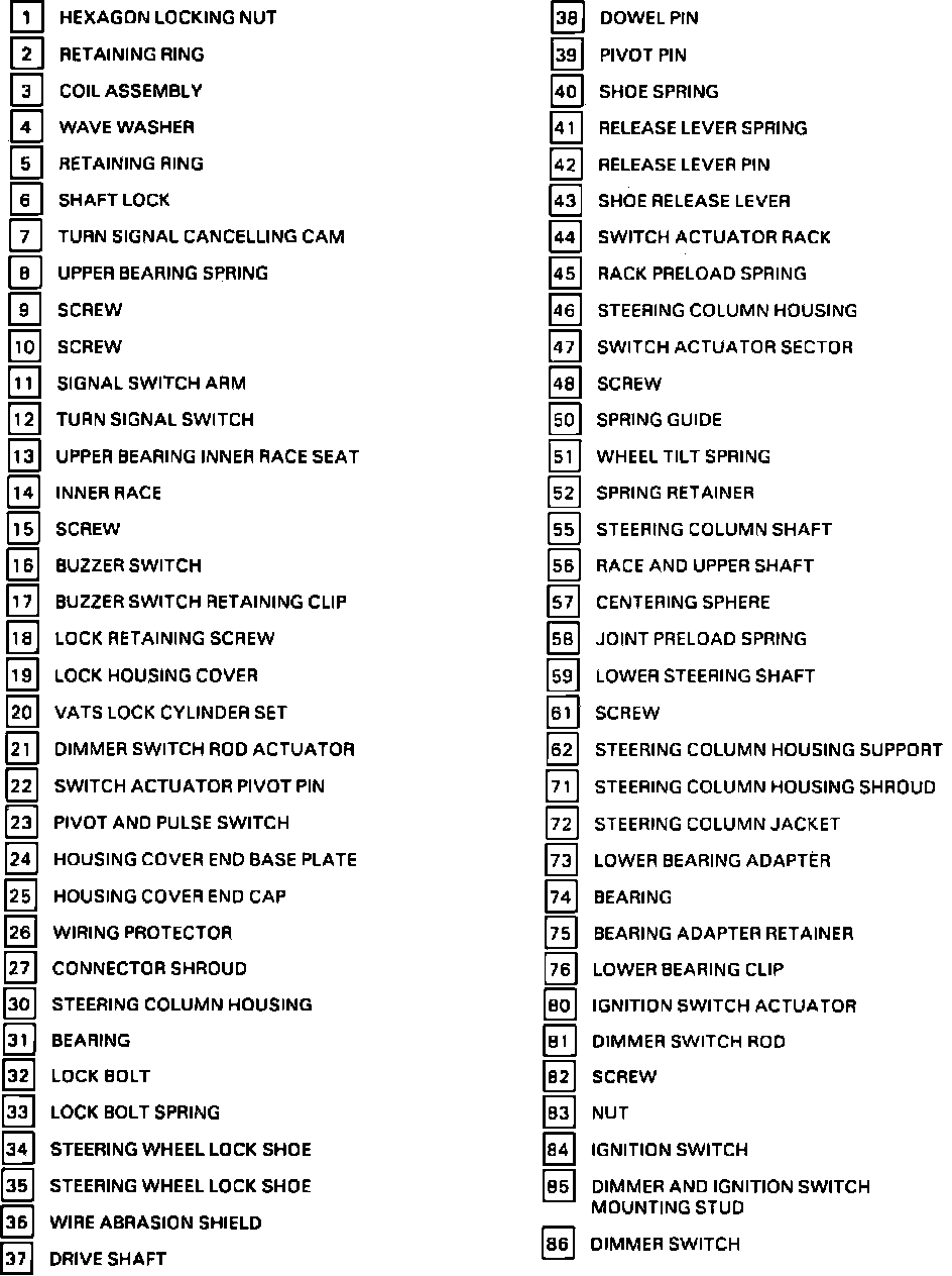 COIL ASSEMBLY, SHAFT LOCK, TURN SIGNAL CANCELLING CAM, UPPER BEARING SPRING, UPPER BEARING SEAT, INNER RACE TURN SIGNAL SWITCH, BUZZER SWITCH & LOCK CYLINDER SET