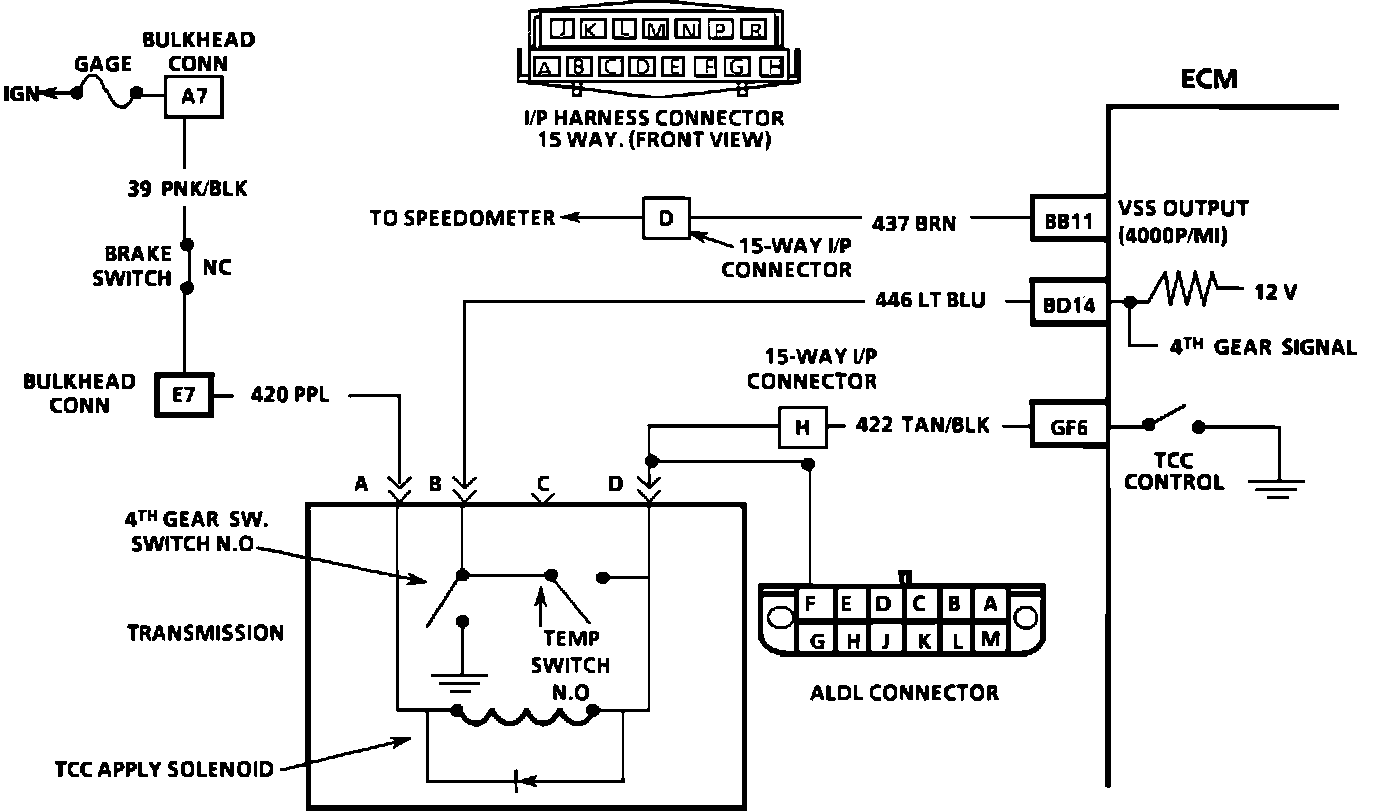 A fourth gear switch (mounted in the transmission) opens when the transmission shifts into 4th gear, and this switch is used by the ECM to modify TCC lock and unlock points, when in a 4-3 downshift maneuver.