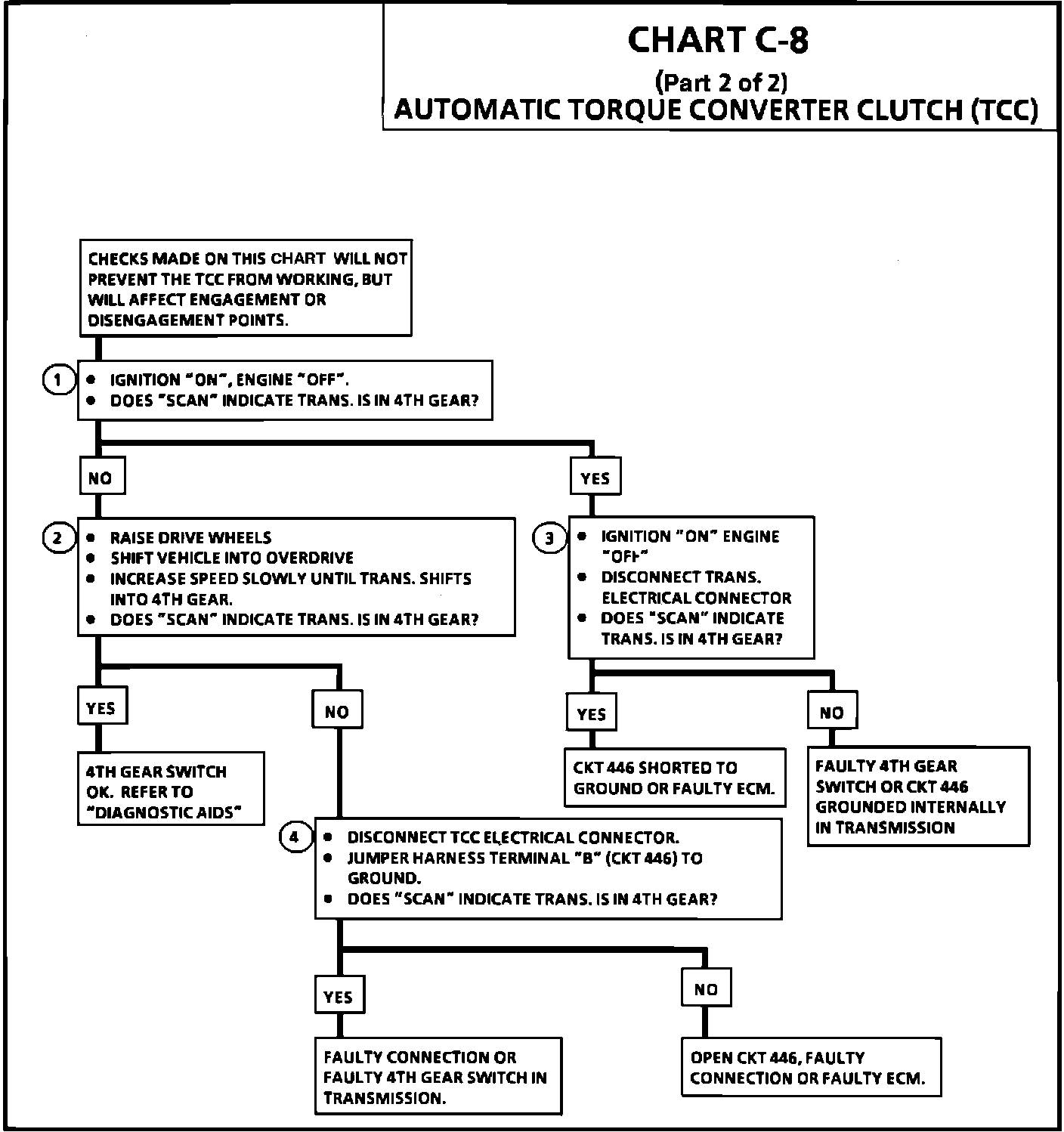 1. Unless the switch or CKT 446 is open "Scan" should display "NO," indicating the trans. is not in 4th gear. The 4th gear switch should only be open while in 4th gear.