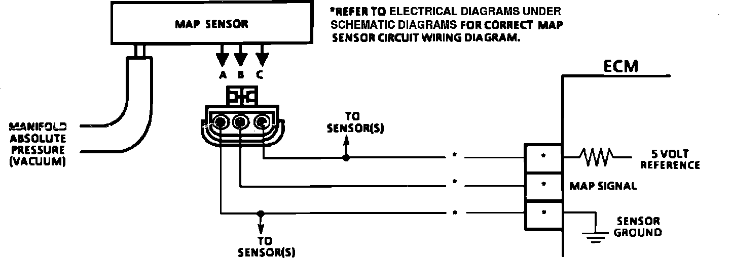 If the MAP sensor fails, the ECM will substitute a fixed MAP value and use the throttle position sensor (TPS) to control fuel delivery.