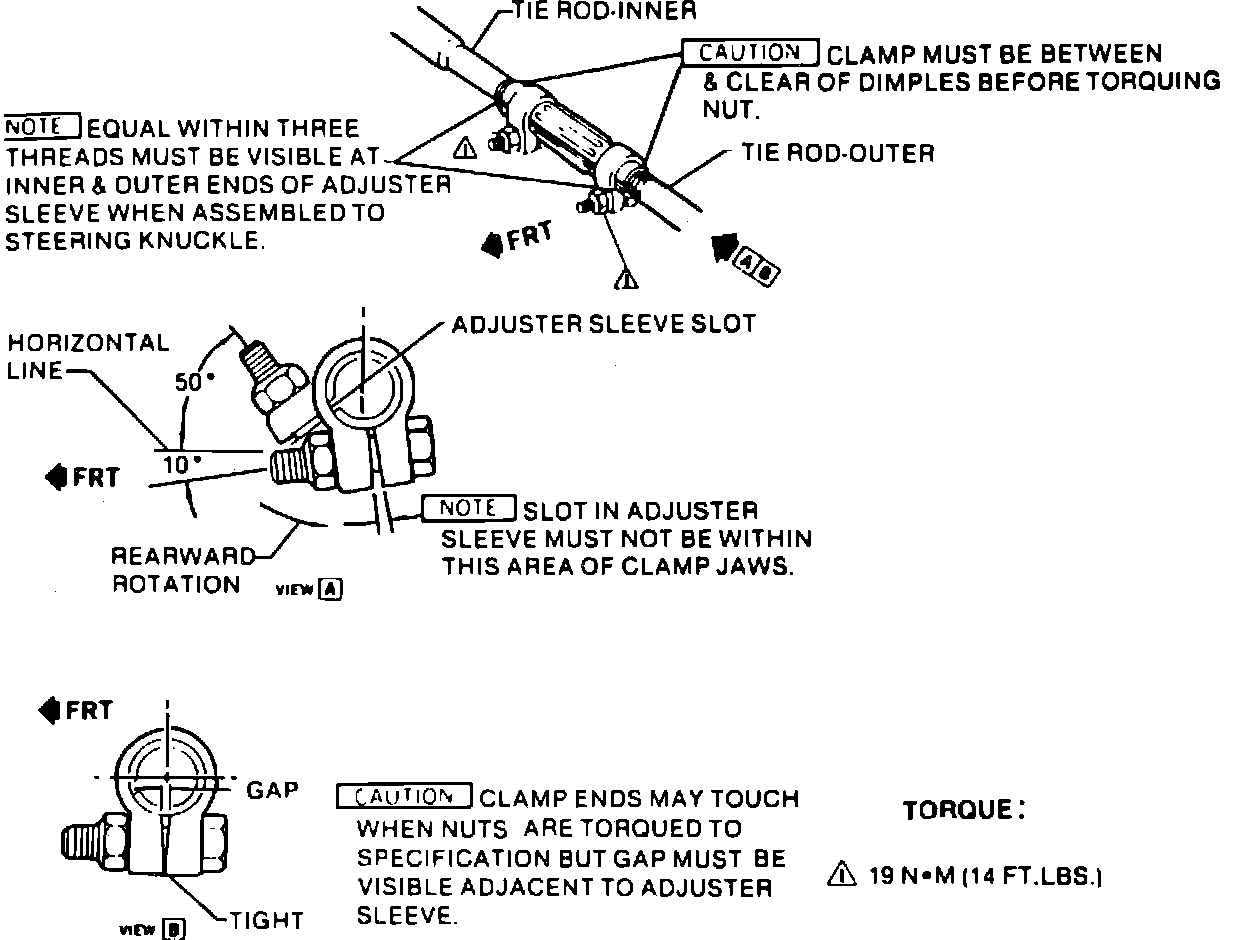 1. Loosen clamp bolts at each end of tie rod adjustable sleeves.