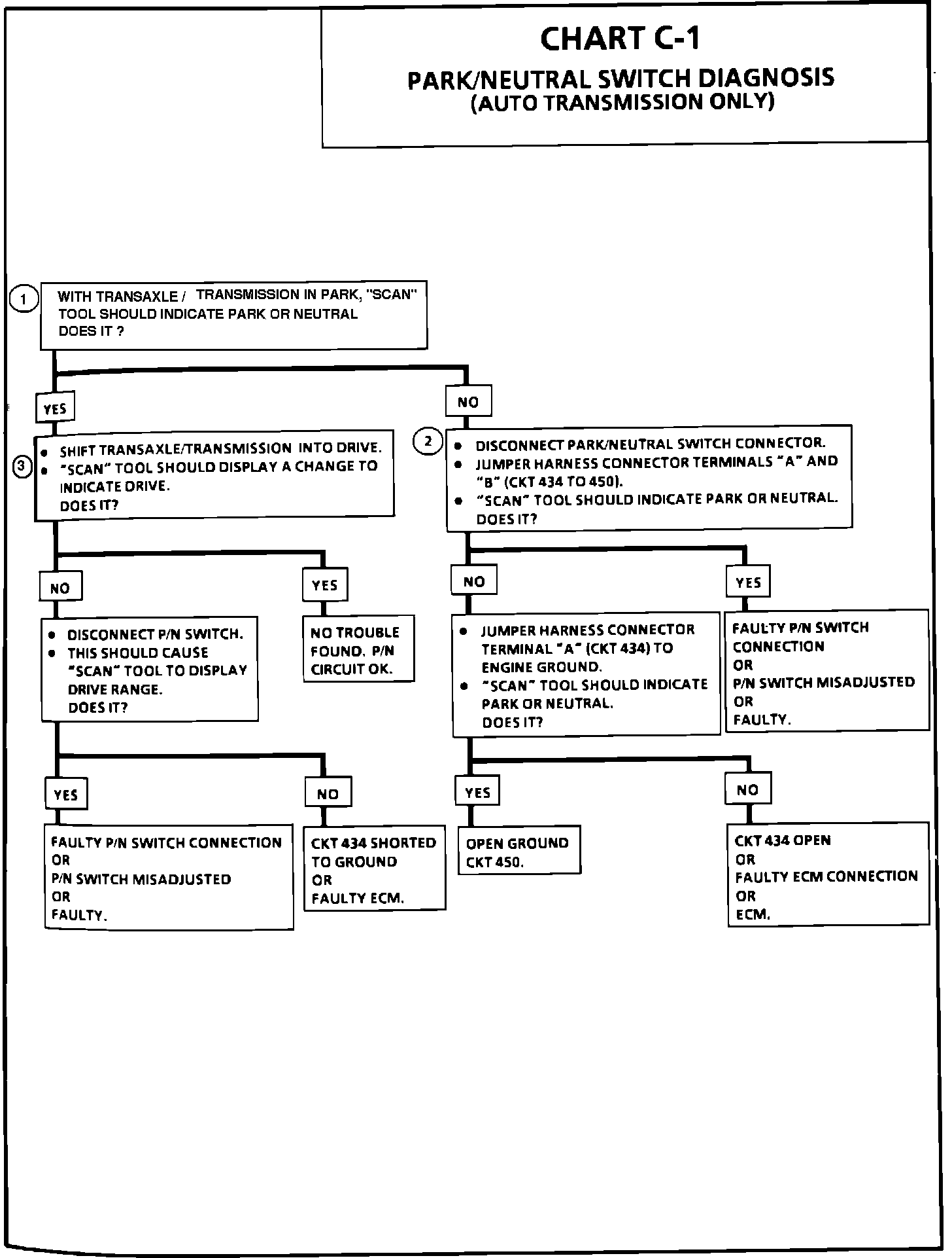 ^ If CKT 434 indicates P/N (grounded), while in drive range, the EGR would be inoperative, resulting in possible detonation.
