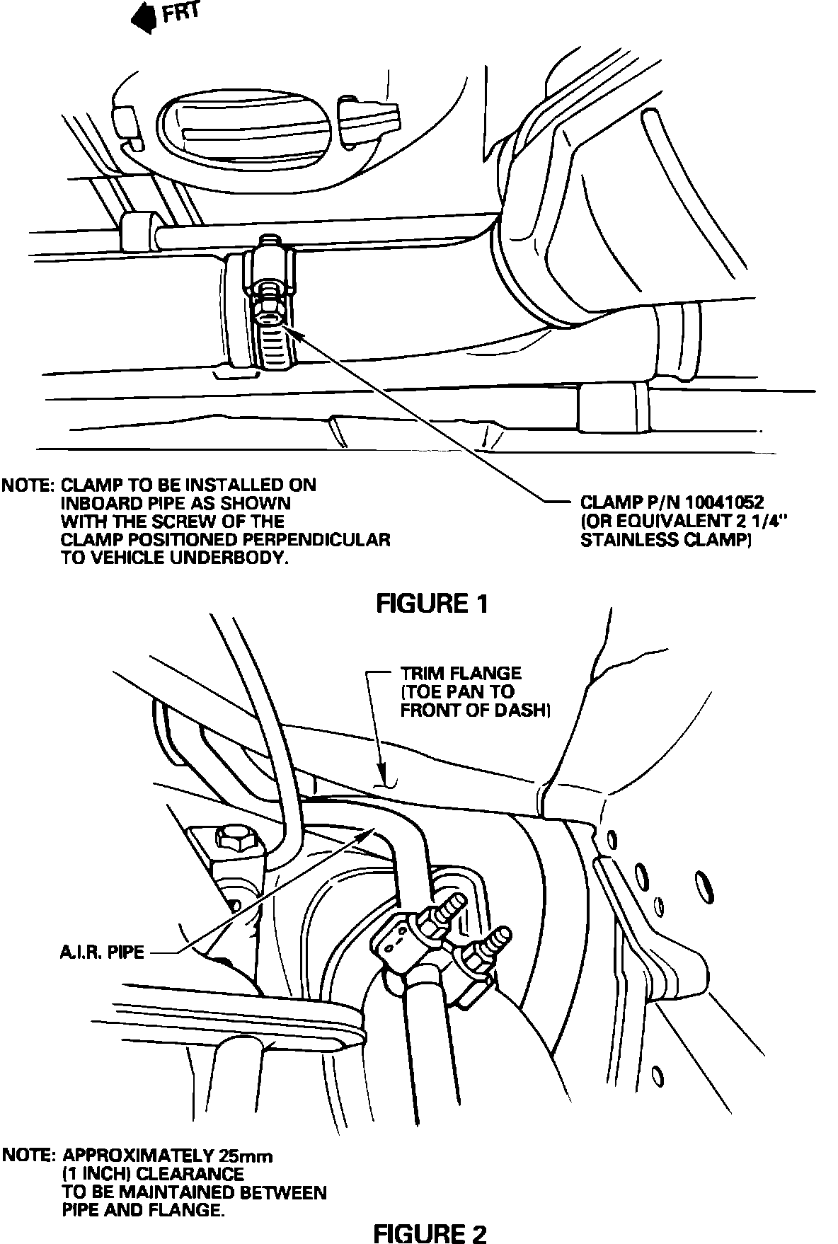 Reposition A.I.R. pipe to insure clearance of approximately 25 mm (1 inch) between the pipe and trim flange. (reference Figure 2).
