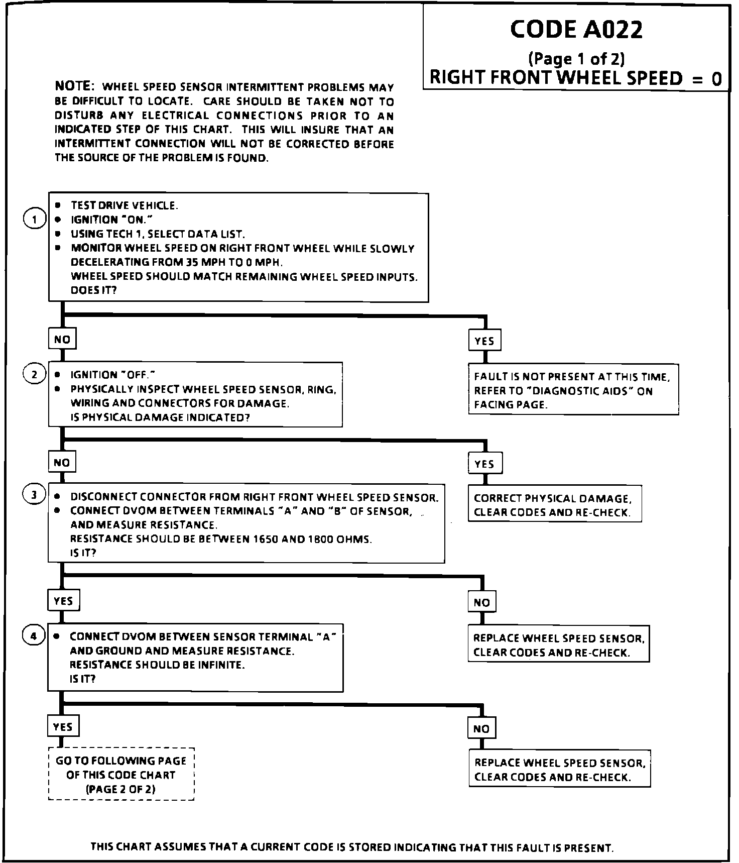 Fig. 18 Code A022 (Right Front Wheel Speed = 0, Part 1 Of 2):