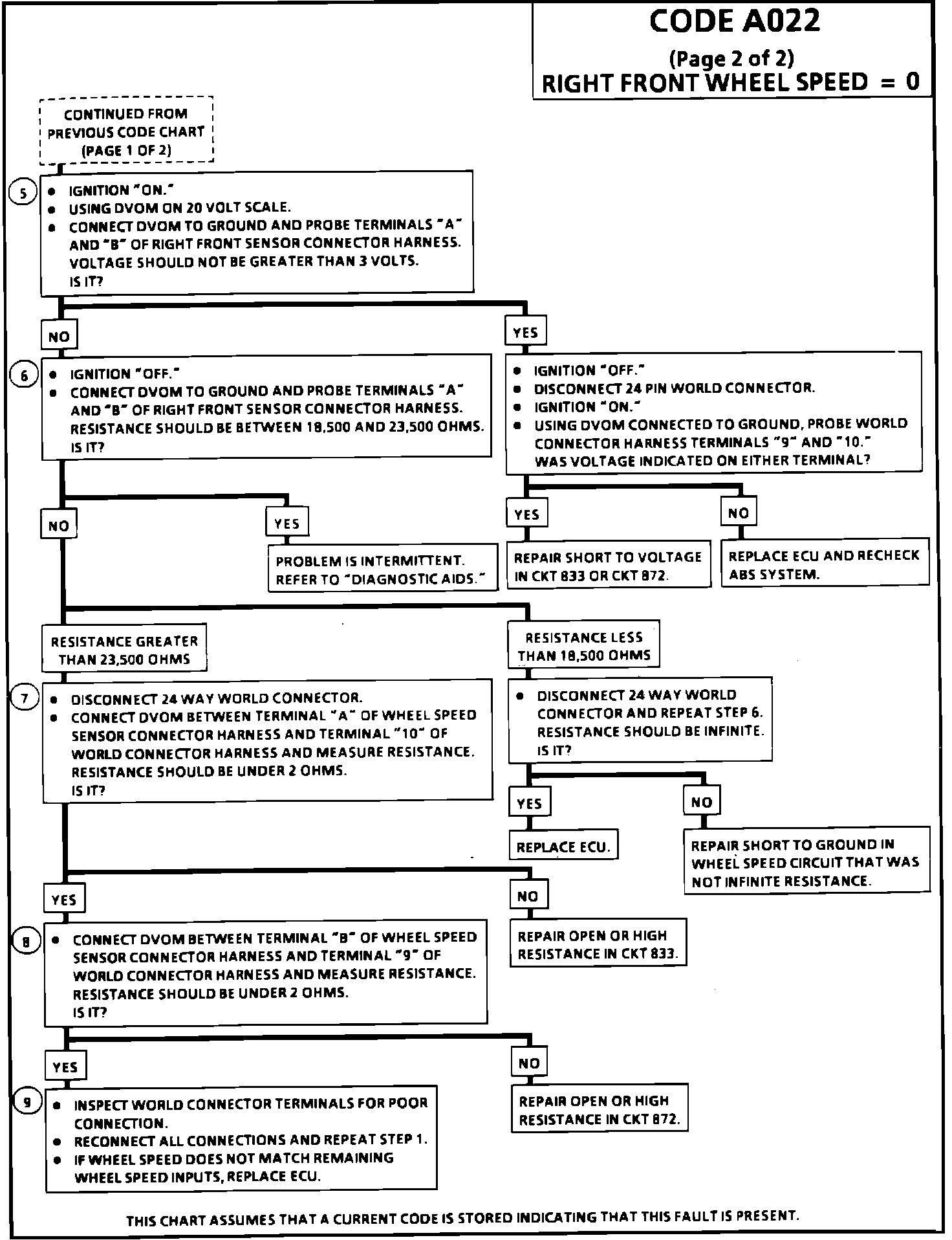 Fig. 18 Code A022 (Right Front Wheel Speed = 0, Part 2 Of 2):