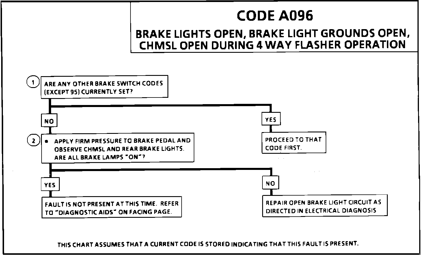 Fig. 66 Code A096 (Brake Lights Open, Brake Light Grounds Open, CHMSL Open During 4-way Flasher Operation):
