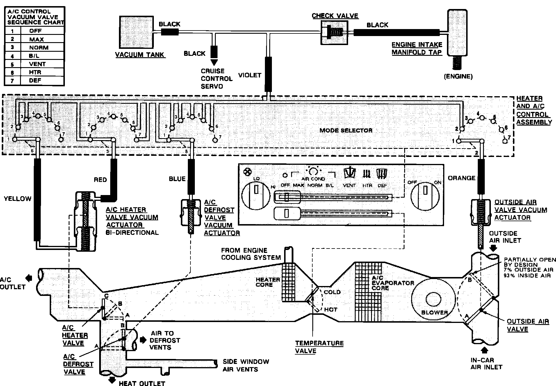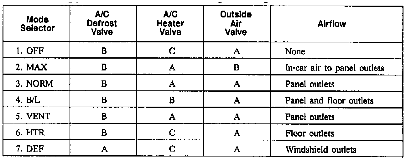 If airflow does not come from the proper outlets under one or more operating models, check the operation of the valves using the chart and diagram.