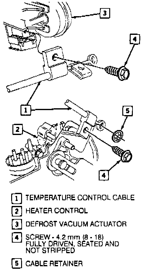 When servicing a temperature control cable assembly for failure of the cable to "snap in" to either the heater control or vacuum actuator, the following repair procedure can be used: