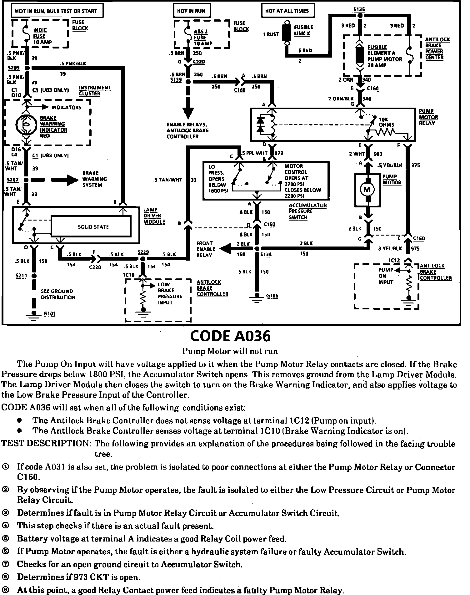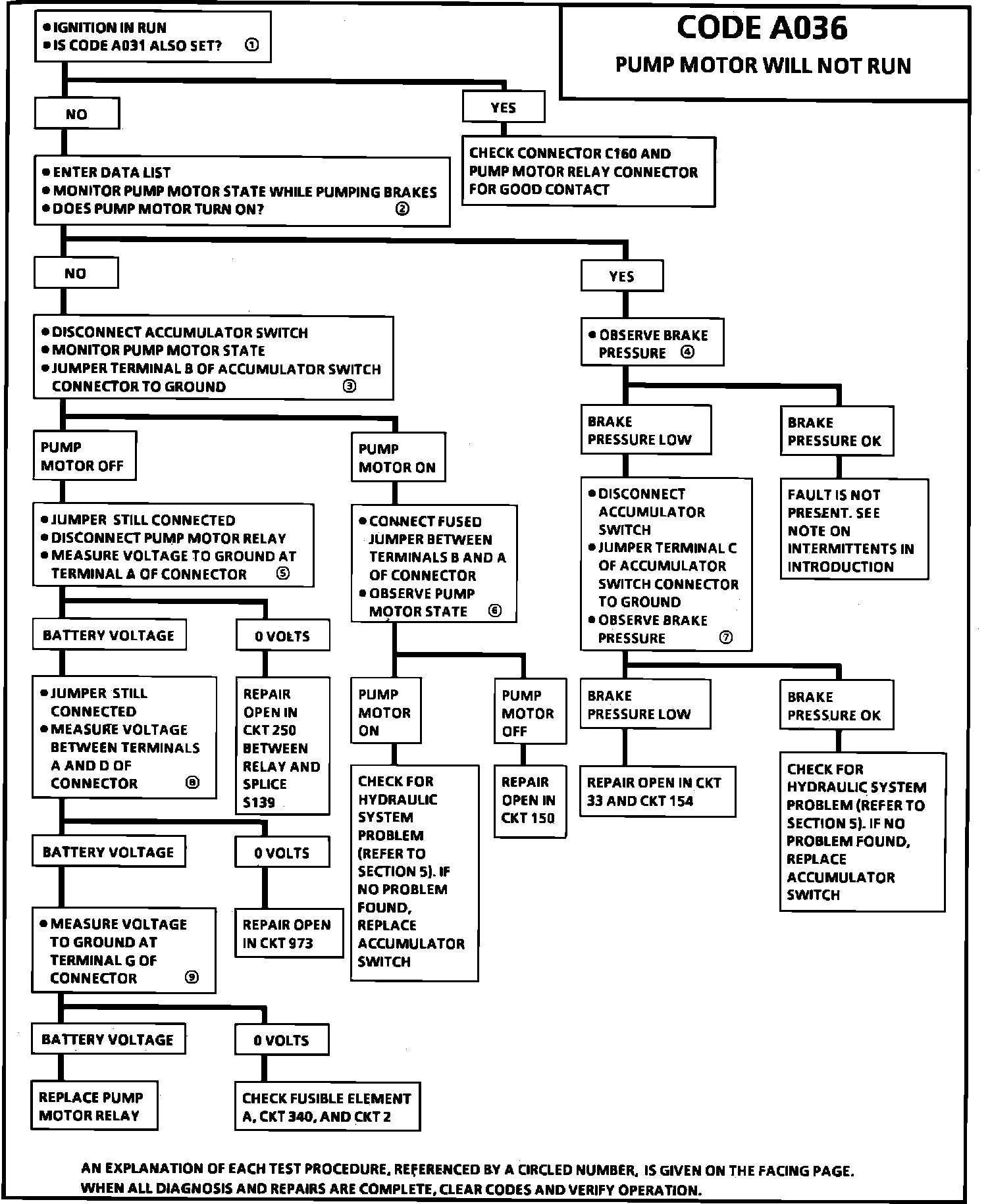Fig. 47 Code A036, Pump Motor Will Not Run. 1990-91 Models. (Part 1 Of 2).: