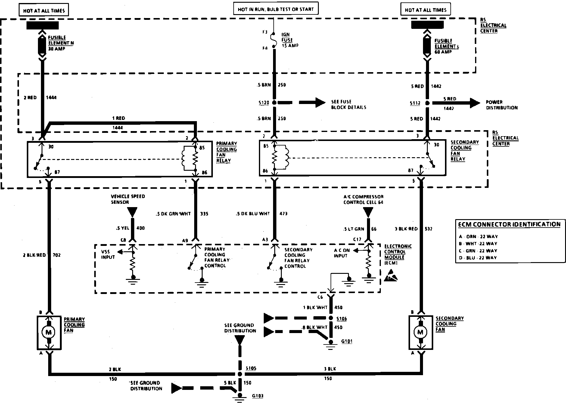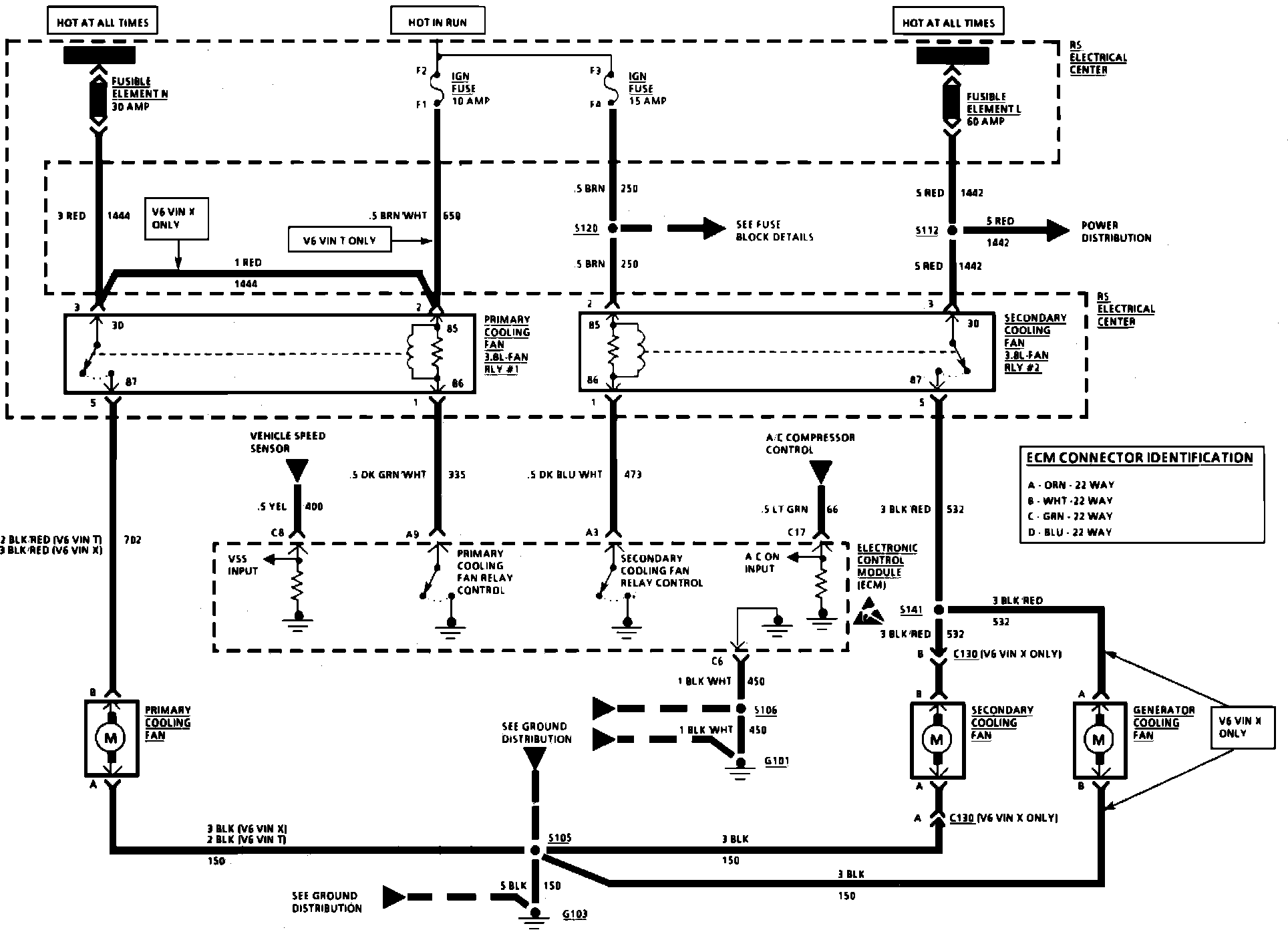 Fig. 38 Coolant Fan Wiring Circuit (Part 1 Of 3). 1991 Cutlass Supreme & Grand Prix w/3.1L/V6-192 & 3.4L/V6-204: