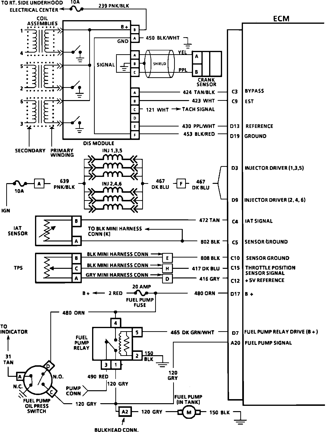 D7 = FUEL PUMP RELAY DRIVE (B+)