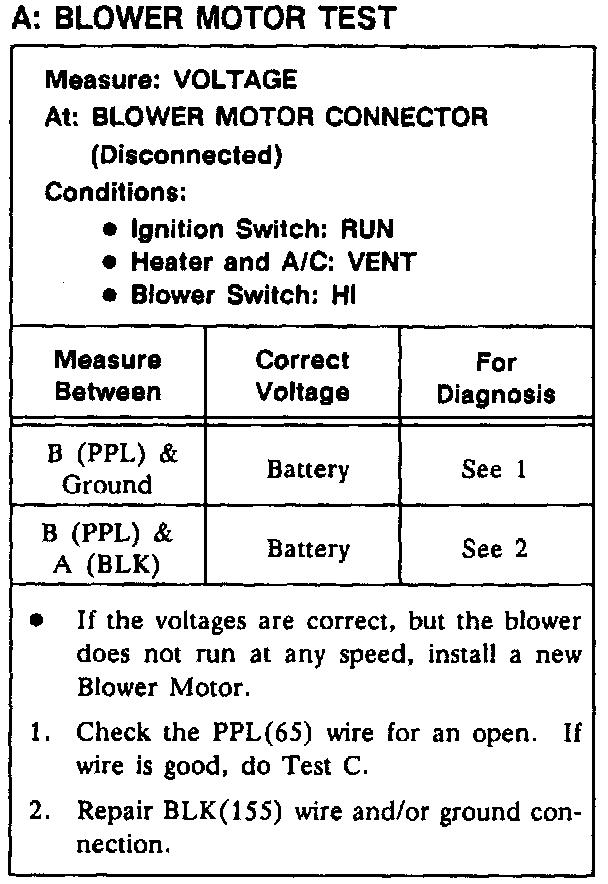 Test A: Blower Motor Test