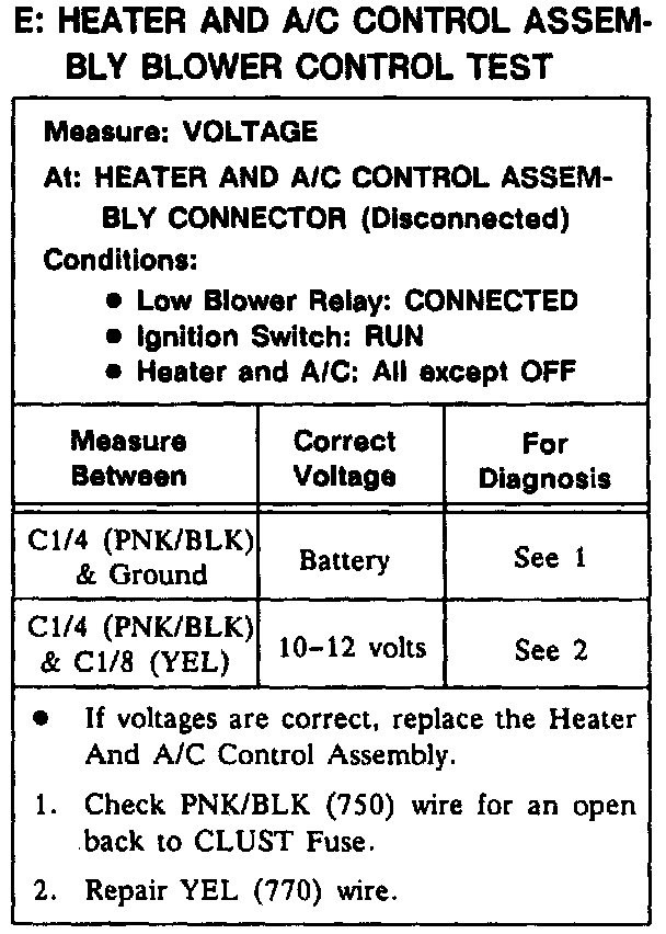Test E: Heater & A/C Control Assembly Blower Control Test