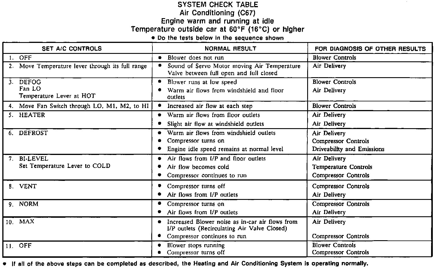 Even though one or more checks may not give the normal result, complete the entire System Check to reveal all symptoms which may exist.