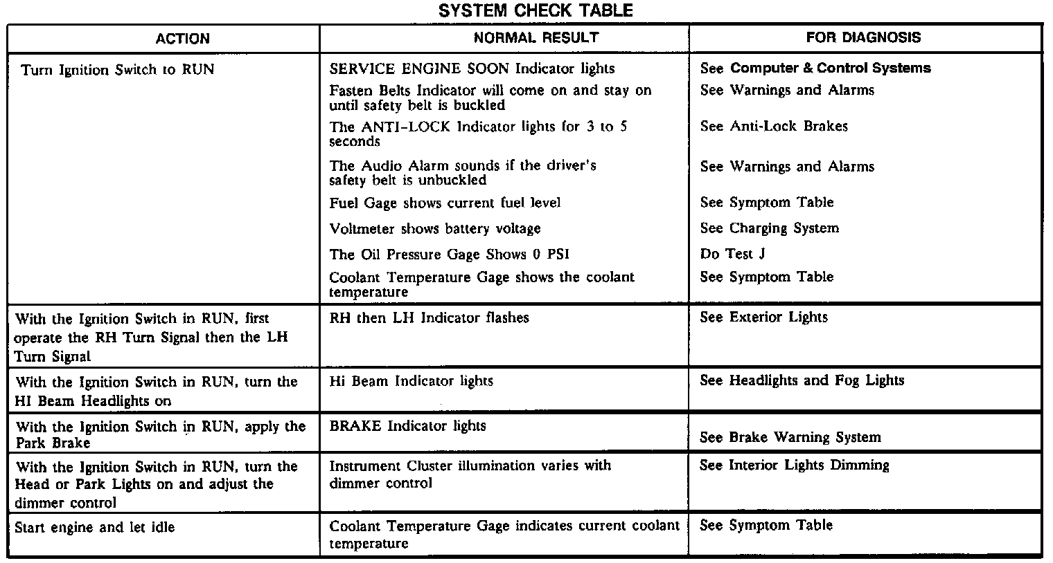 ^ Use the System Check Table as a guide to normal operation. Refer to the diagnosis given if other results occur.