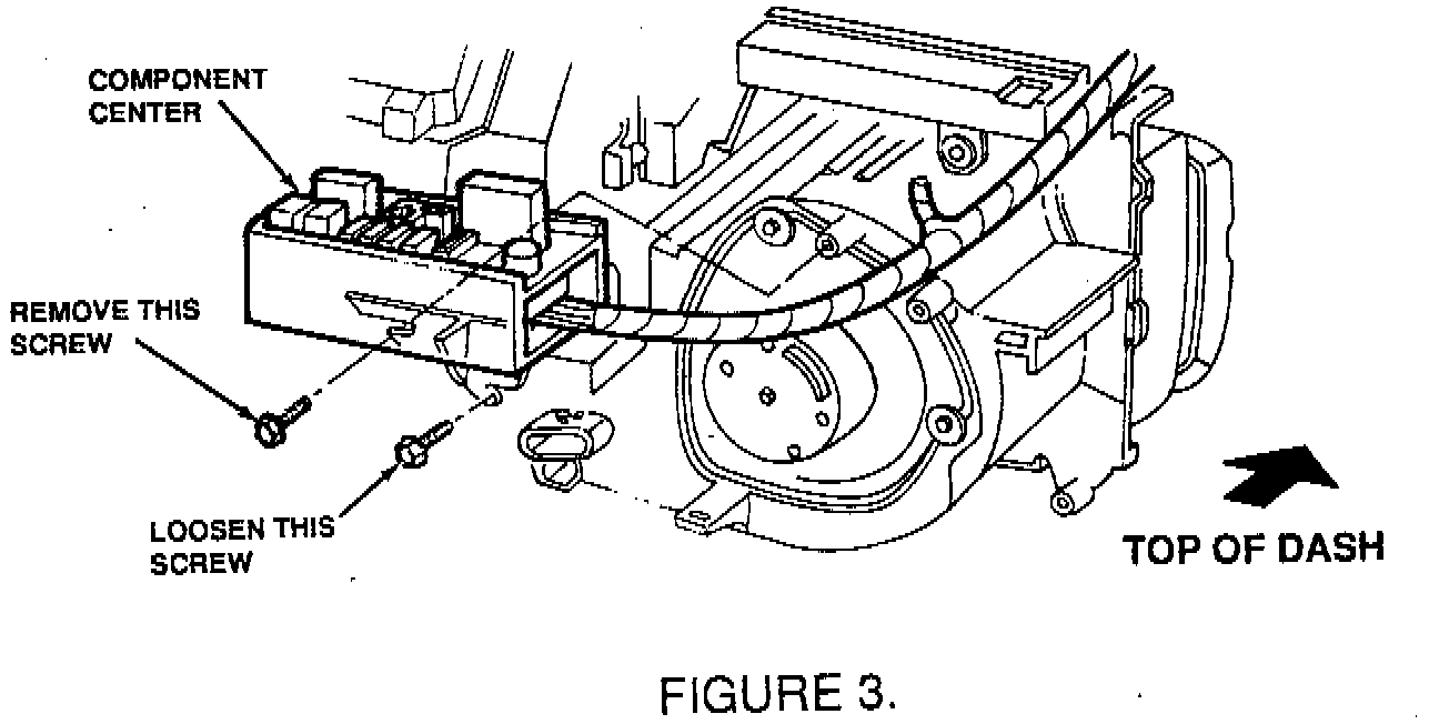c. Remove component center (see Figure 3). There are two (2) 5.5 mm screws underneath. Remove front screw and loosen the rear screw. Slide component center out and slide back of center off to expose wires.