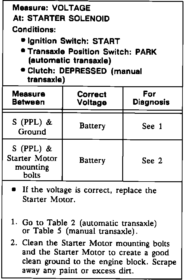 Engine Does Not Crank And The Starter Solenoid Does Not Click (Table 1):