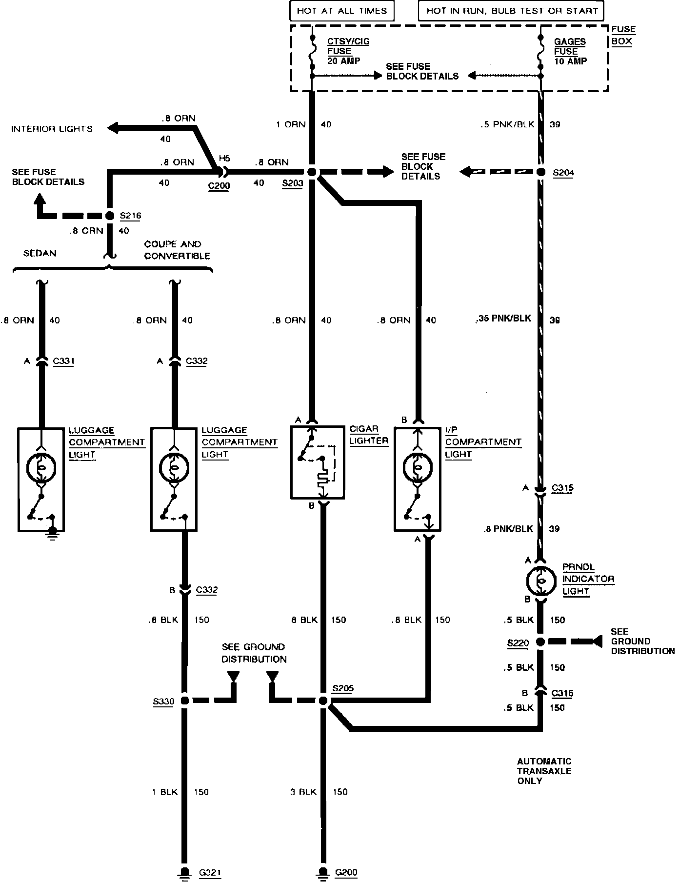 Interior Lights: Cigar Lighter/Luggage Compartment/I/P Compartment/PRNDL Indicator: