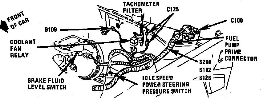 LH Rear Of Engine Compartment, Near Coolant Fan Relay