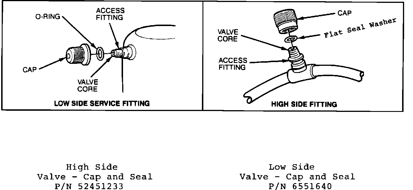 When servicing any vehicle's A/C system, make sure all access fitting cap seals (refer to Figure 1) are in place and tight. Caps should be threaded on until contact with the "O" ring seal is made and then tightened another 1/4 - 1/2 turn to ensure proper sealing.
