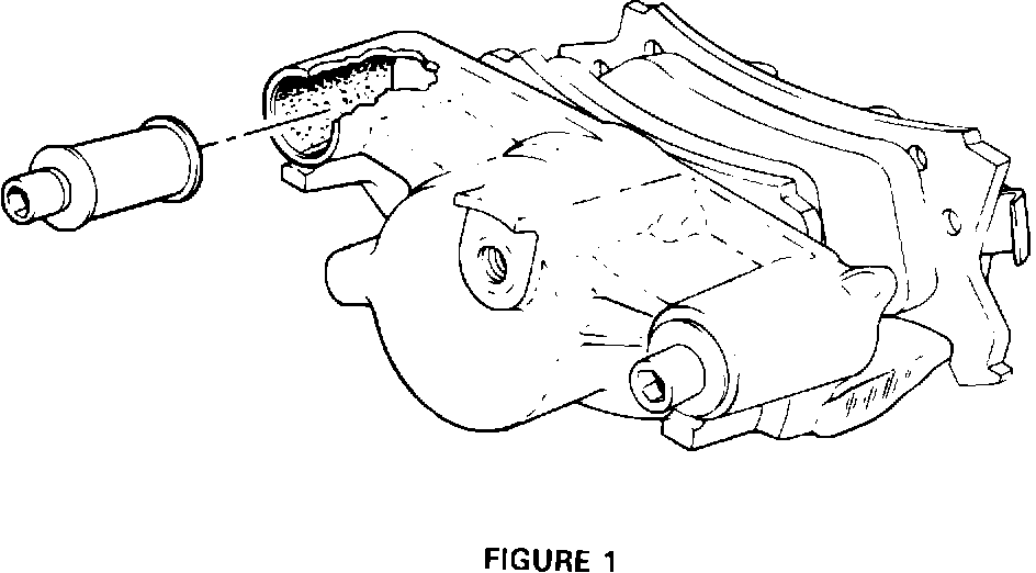 This condition is due to corrosion in the caliper mounting bolt area (See Figure 1) caused by contaminates seeping past the mounting bolt rubber bushing.