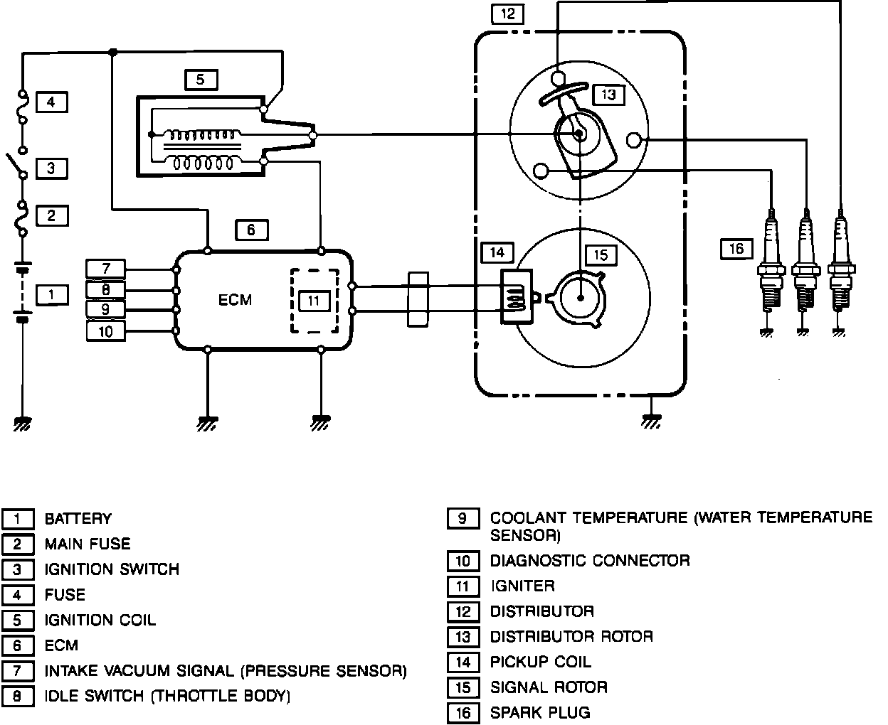 3. The ECM is a microprocessor device that receives input from the ignition module, Manifold Absolute Pressure (MAP) sensor, and Coolant Temperature Sensor (CTS) and calculates an output signal to operate the ignition primary circuit.