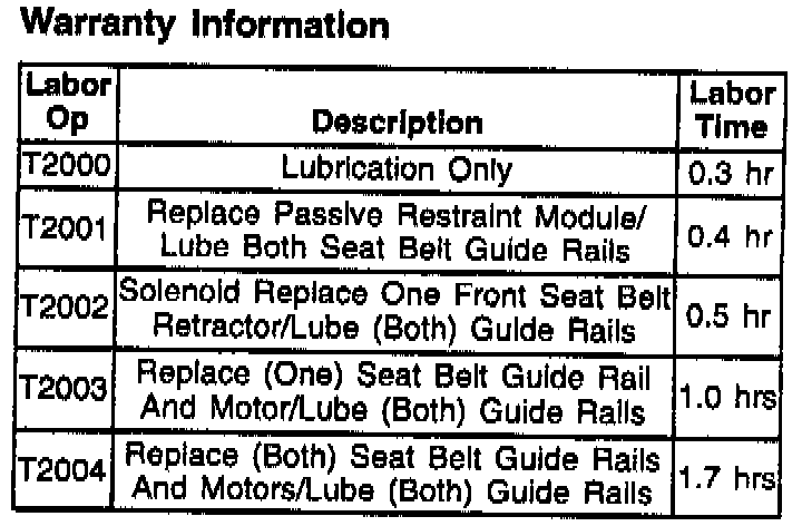 Chattering, Binding or Incomplete/Repeat Traverse of Shoulder Belt on Passive Restraint (Service Procedure, Reference Campaign Bulletin 93-C-57)