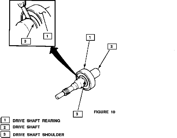Using a feeler gage, measure and record the drive shaft bearing-to-drive shaft shoulder clearance (Figure 10).