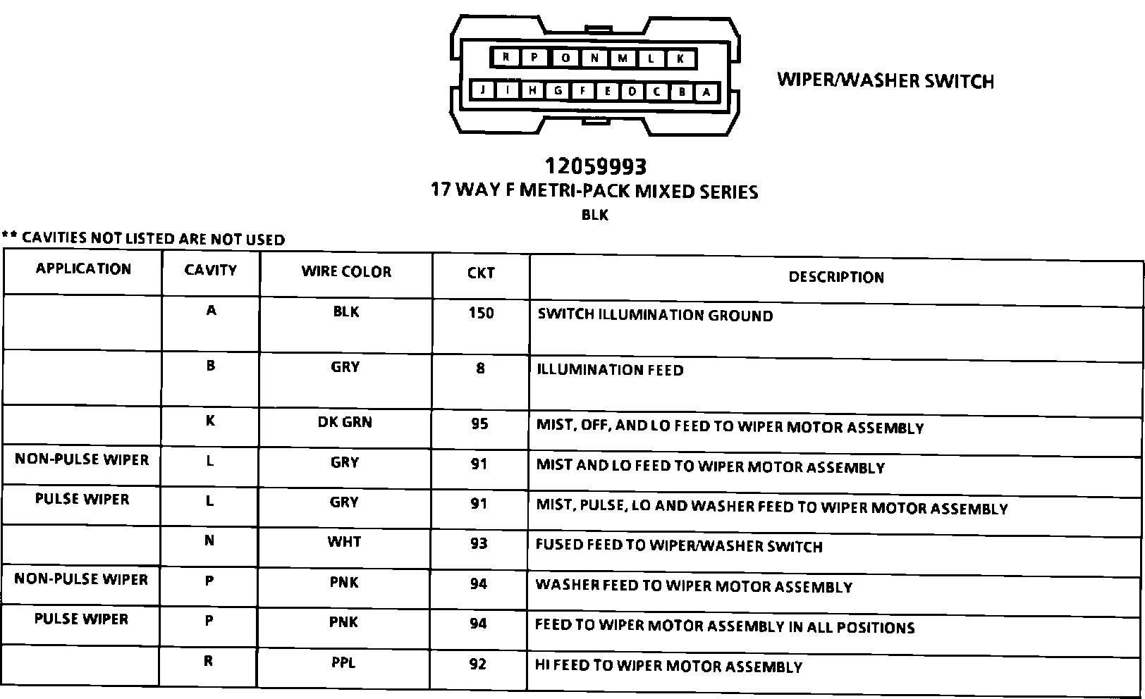 Wiper/Washer Switch Connector Face:
