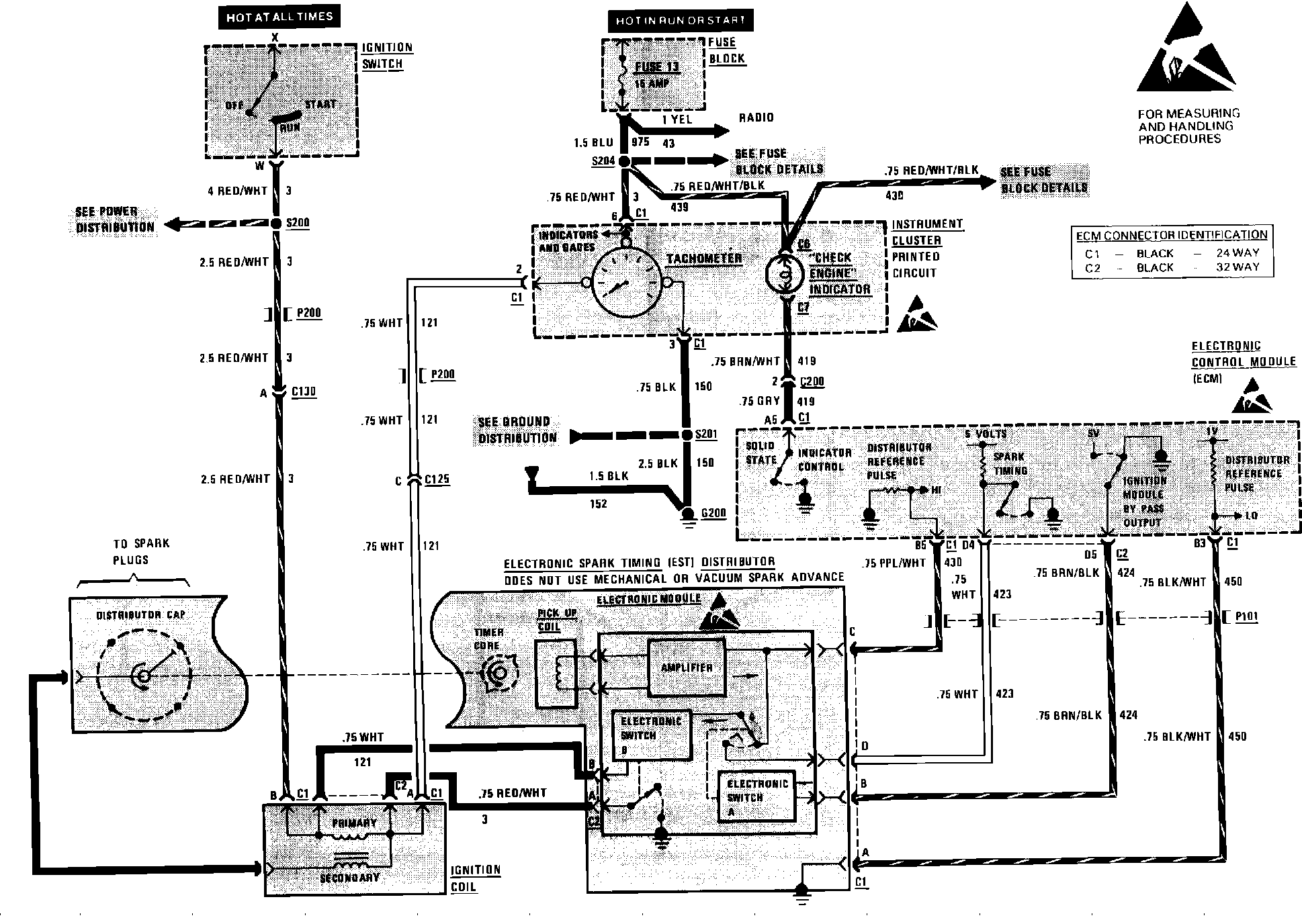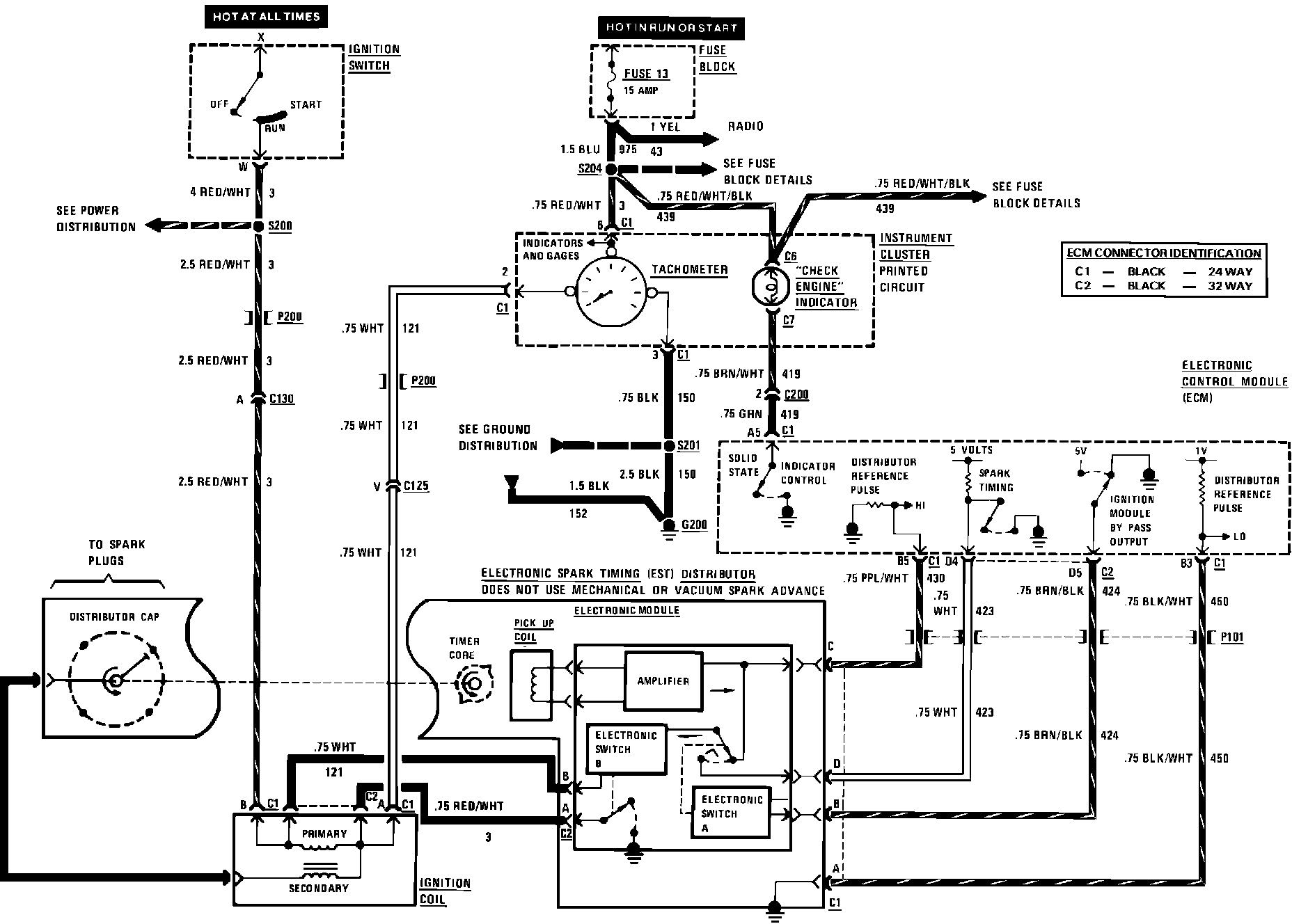 Check Engine Indicator, Tachometer And Electronic Spark Timing (EST) Distributor: