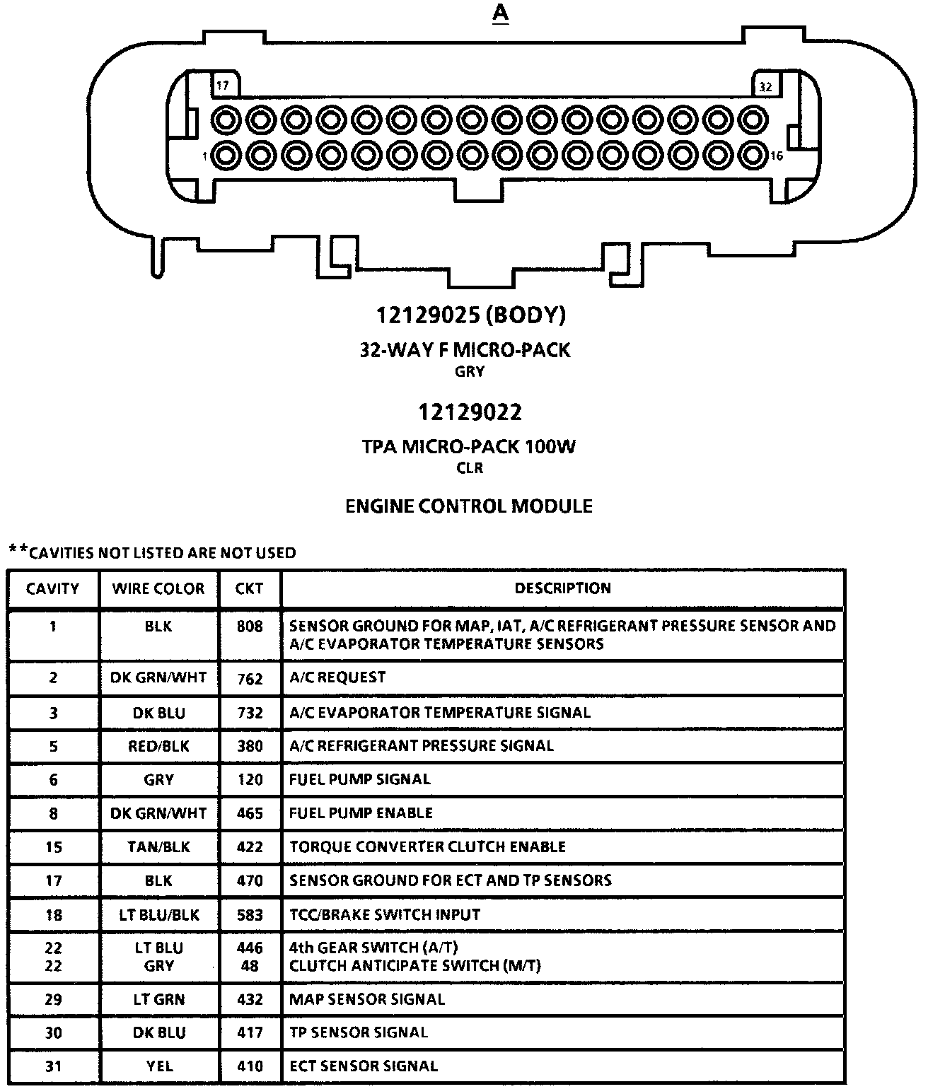 Sequential Fuel Injection V6 VIN S: Engine Control Module, Connector A: