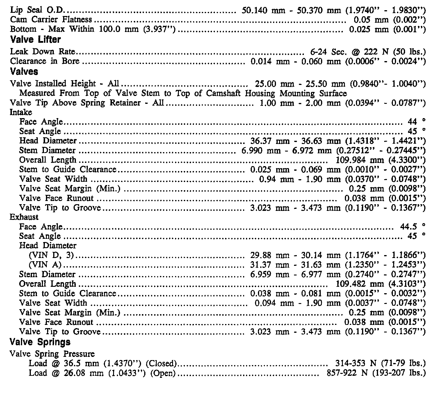 Continued Engine Specifications: