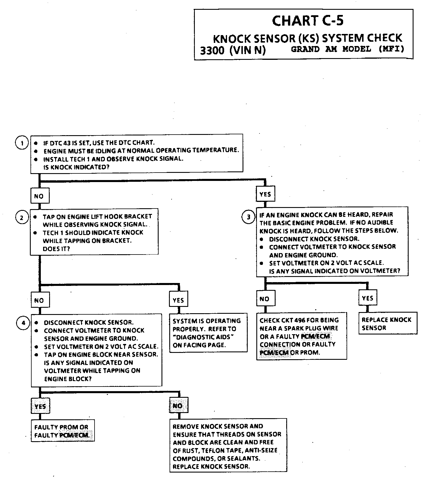 The revised C-5 Knock Sensor System Chart information should be used when diagnosing the knock system on 1993 Grand Am models with 3300 (VIN N - RPO LG7) MFI engine.