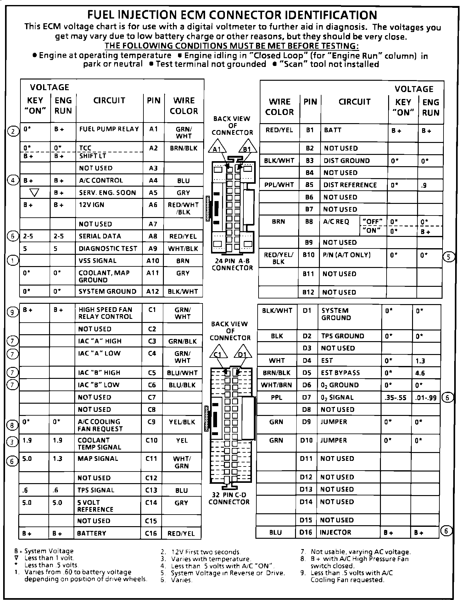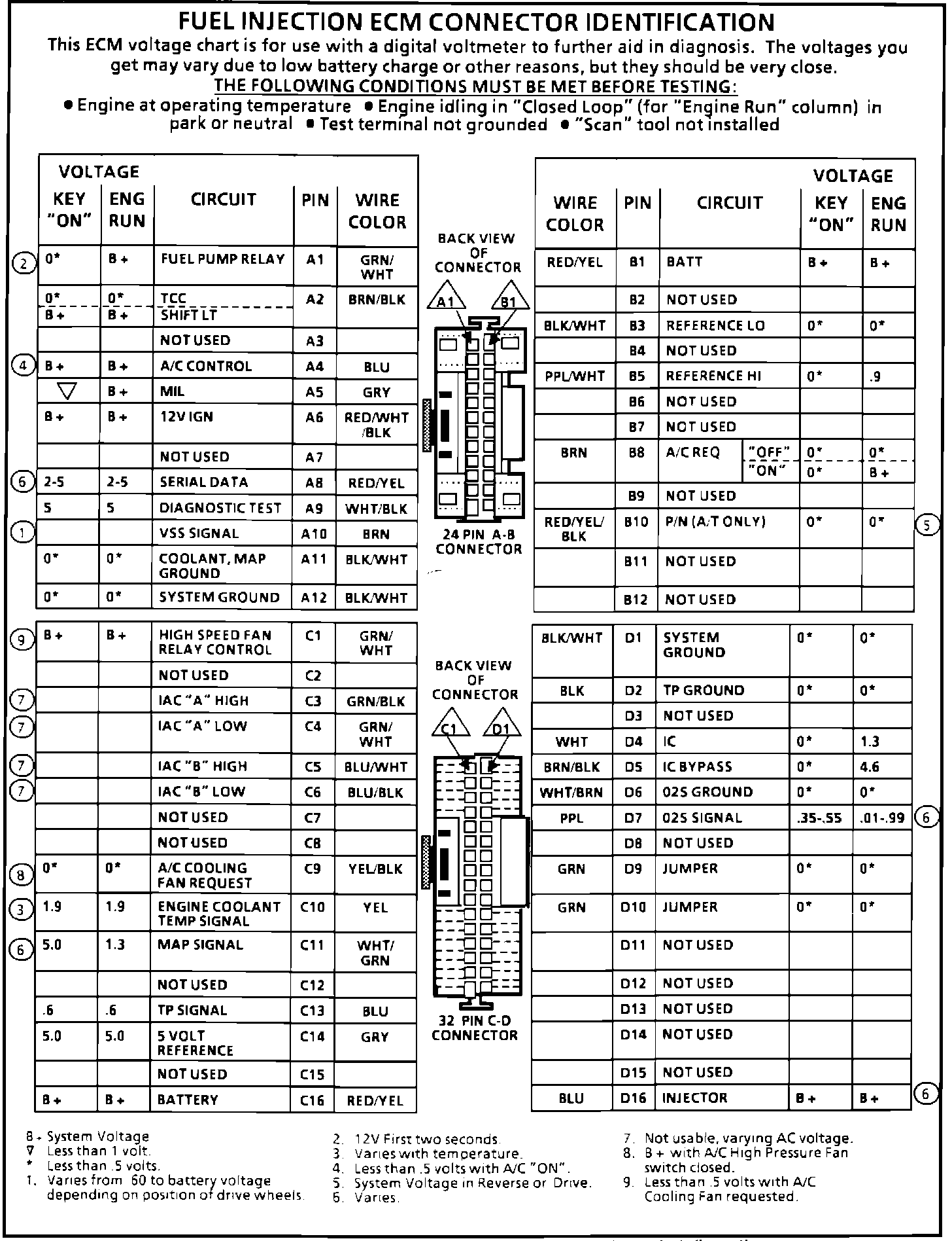 ECM Connector Voltage Chart:
