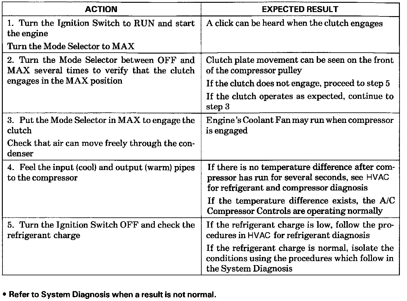 System Check Table: