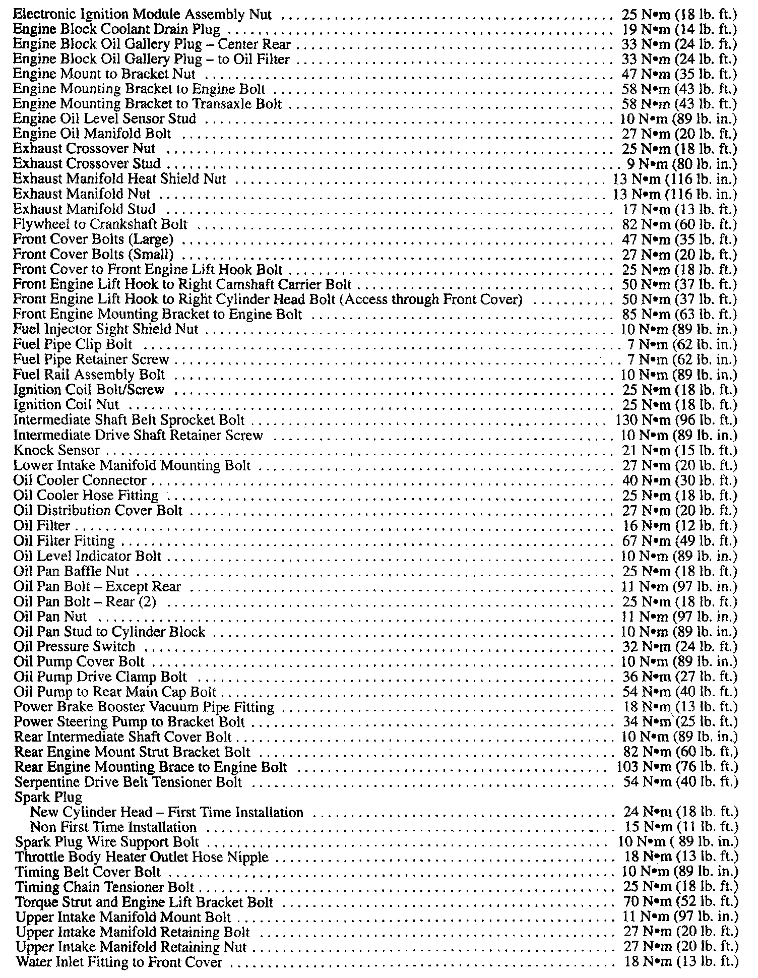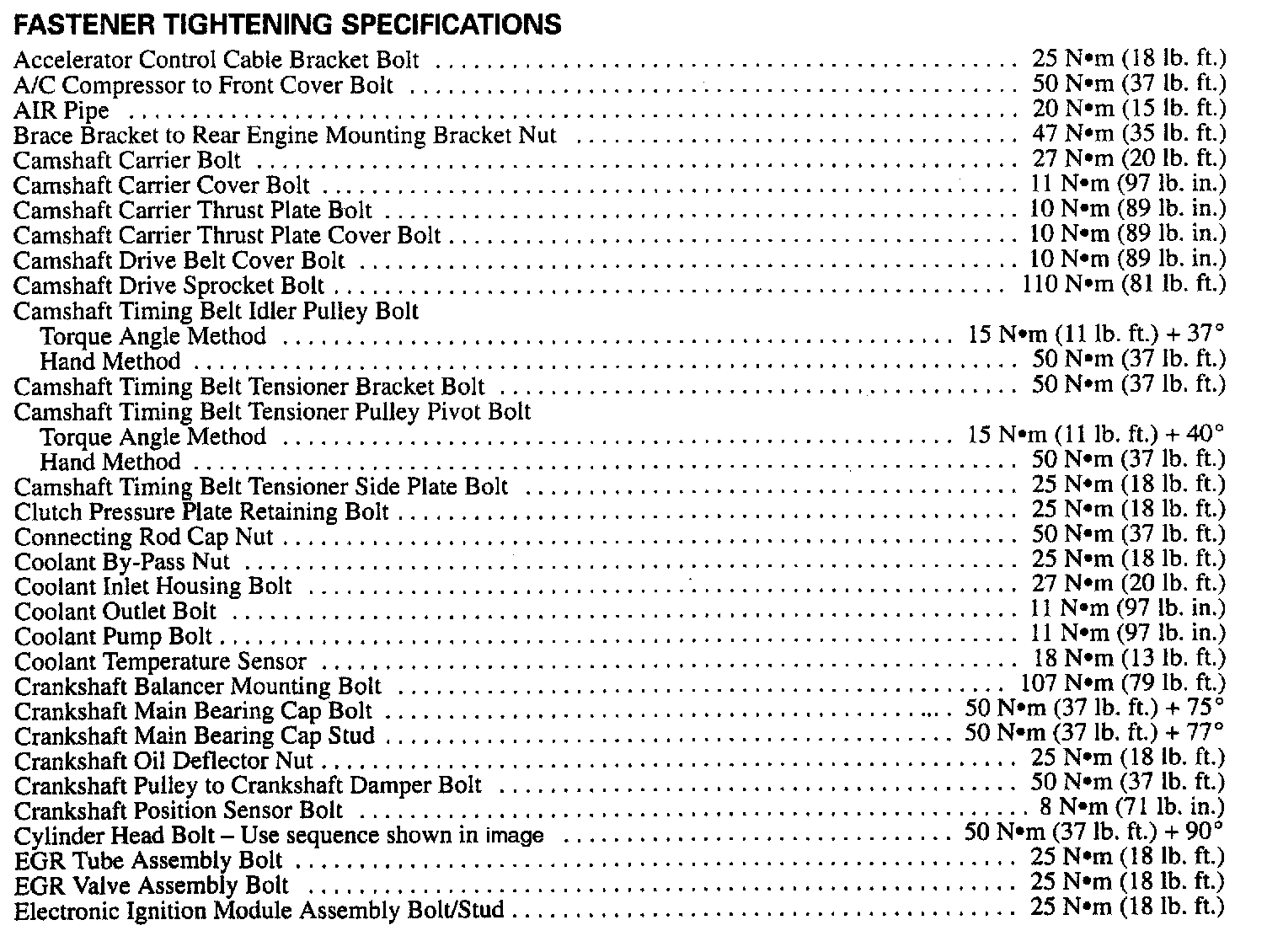 Fastener Tightening Specifications - Engine