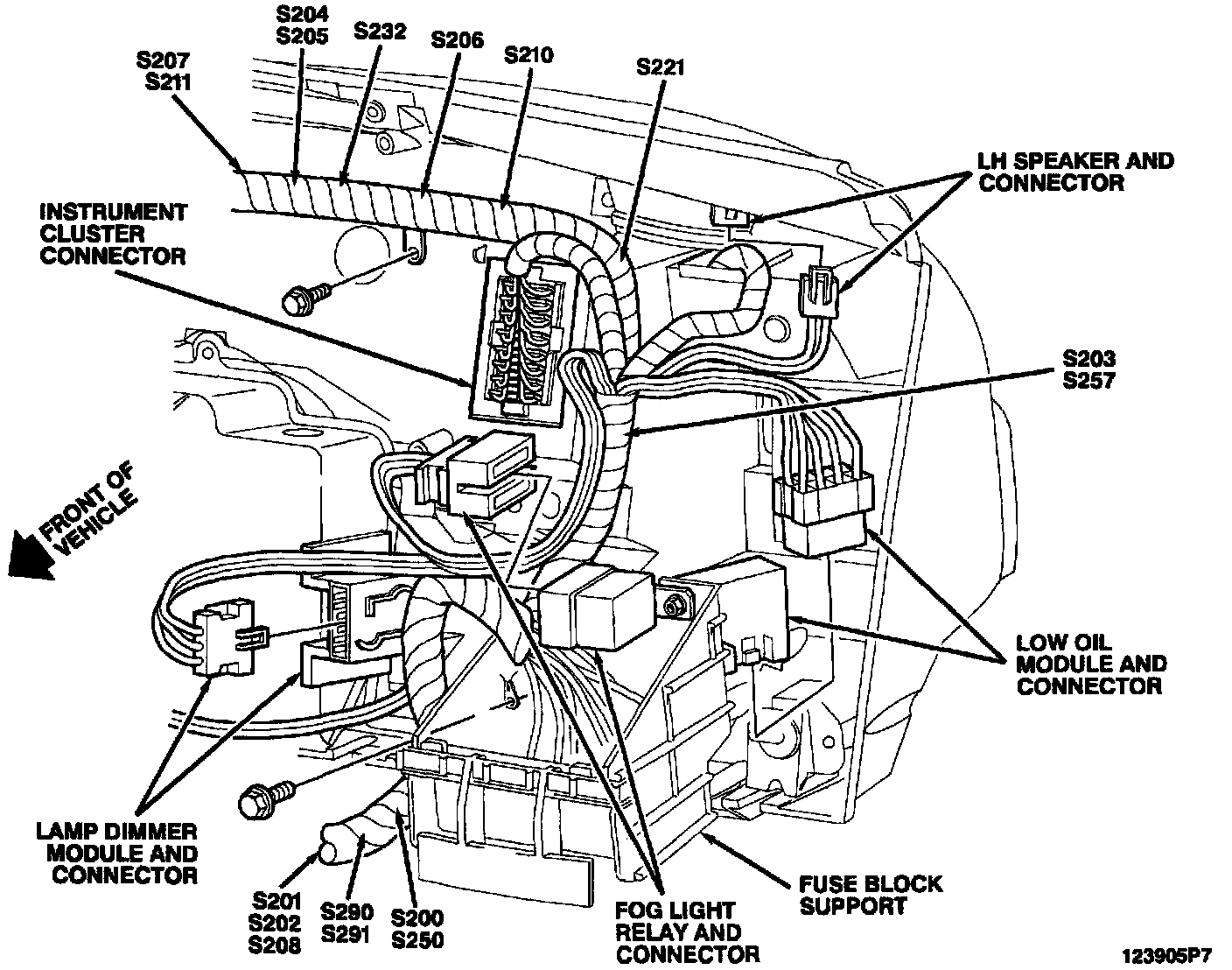 Behind LH Side Of I/P: