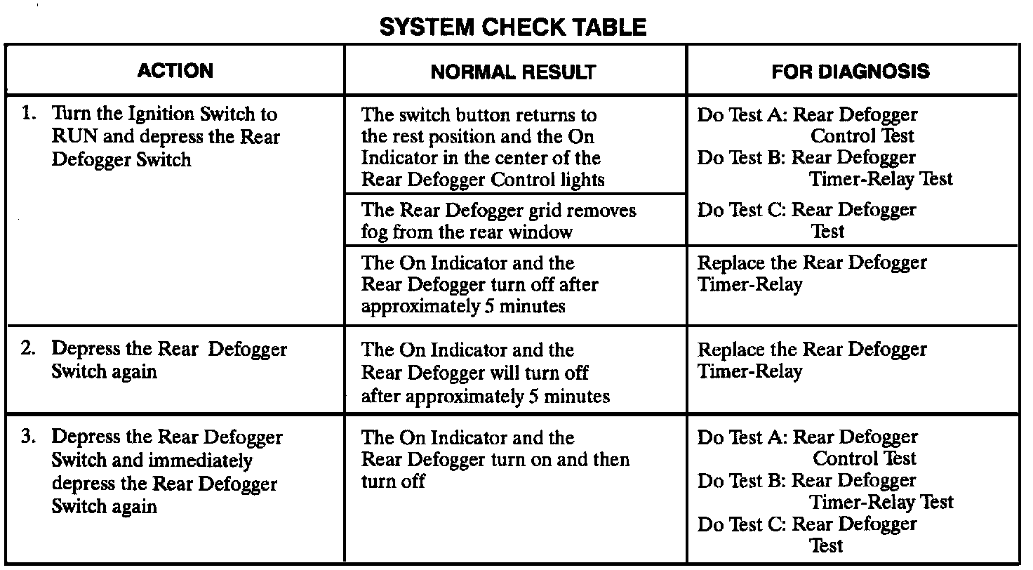 - Use the System Check Table as a guide to normal operation. Refer to the diagnosis given if other results occur. The actions must be performed in the order shown.
