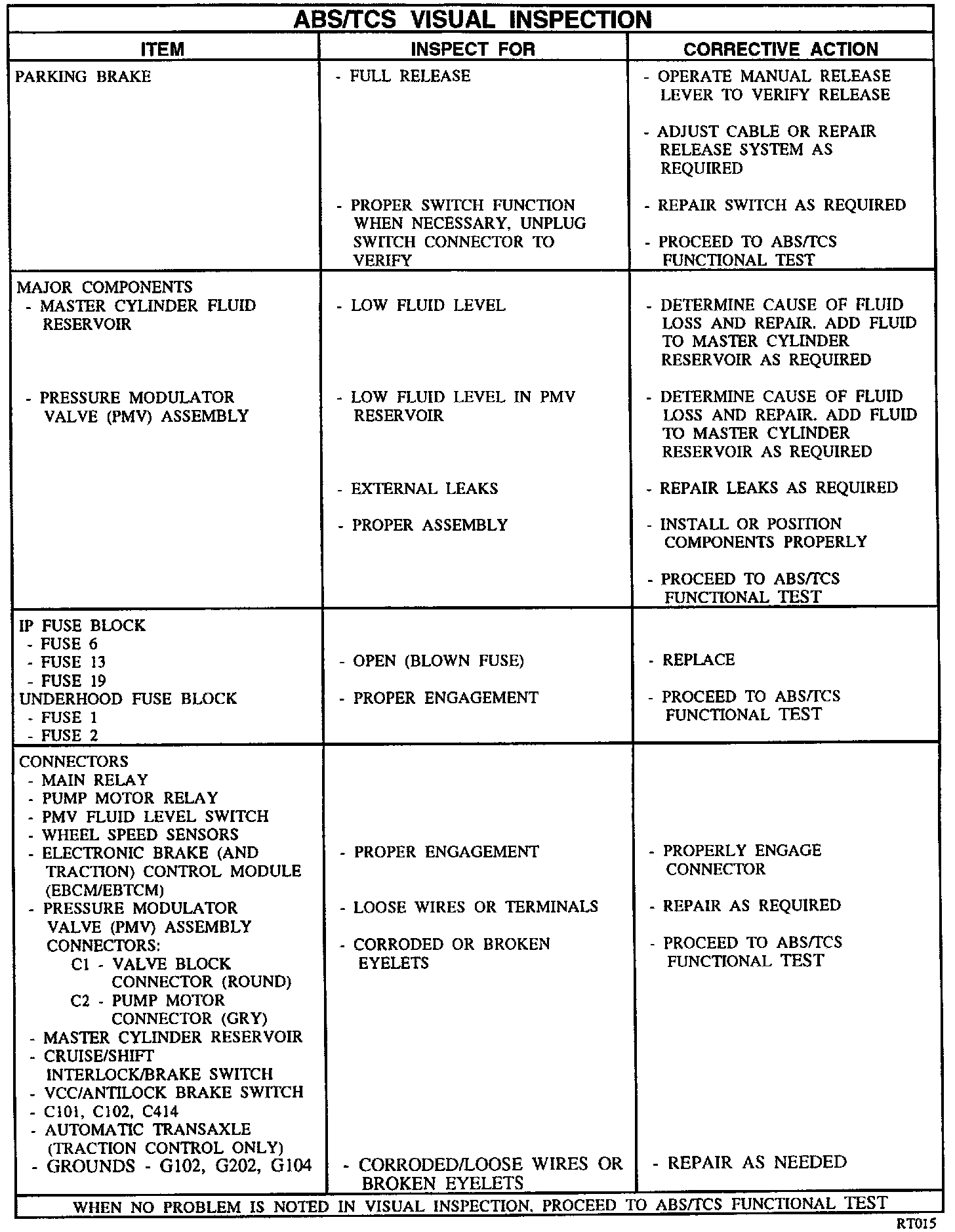 ABS/TCS Visual Inspection: