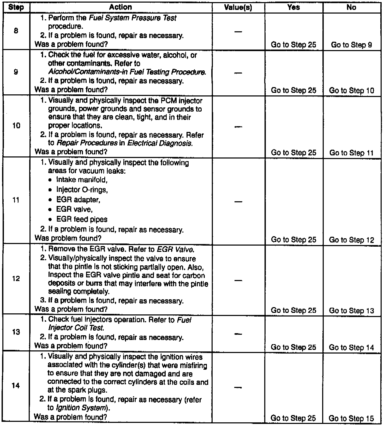 5. through 12. Checks for conditions that can cause a random cylinder misfire.