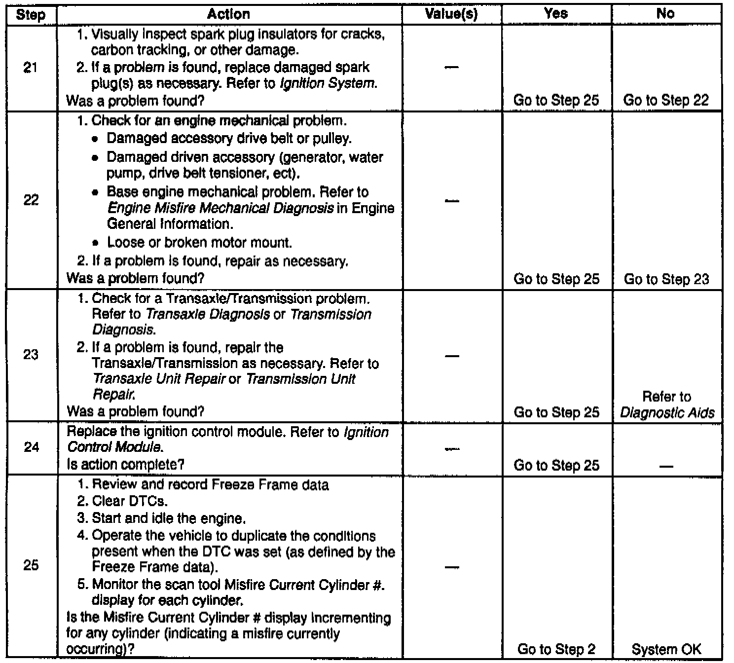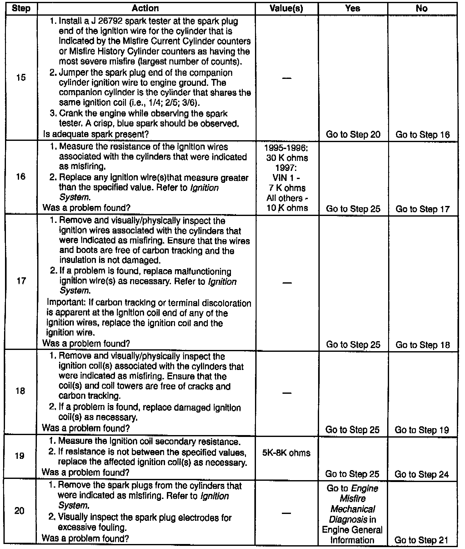 Section 6E - Engine Controls - Revised DTC PO3OO Diagnostic Table