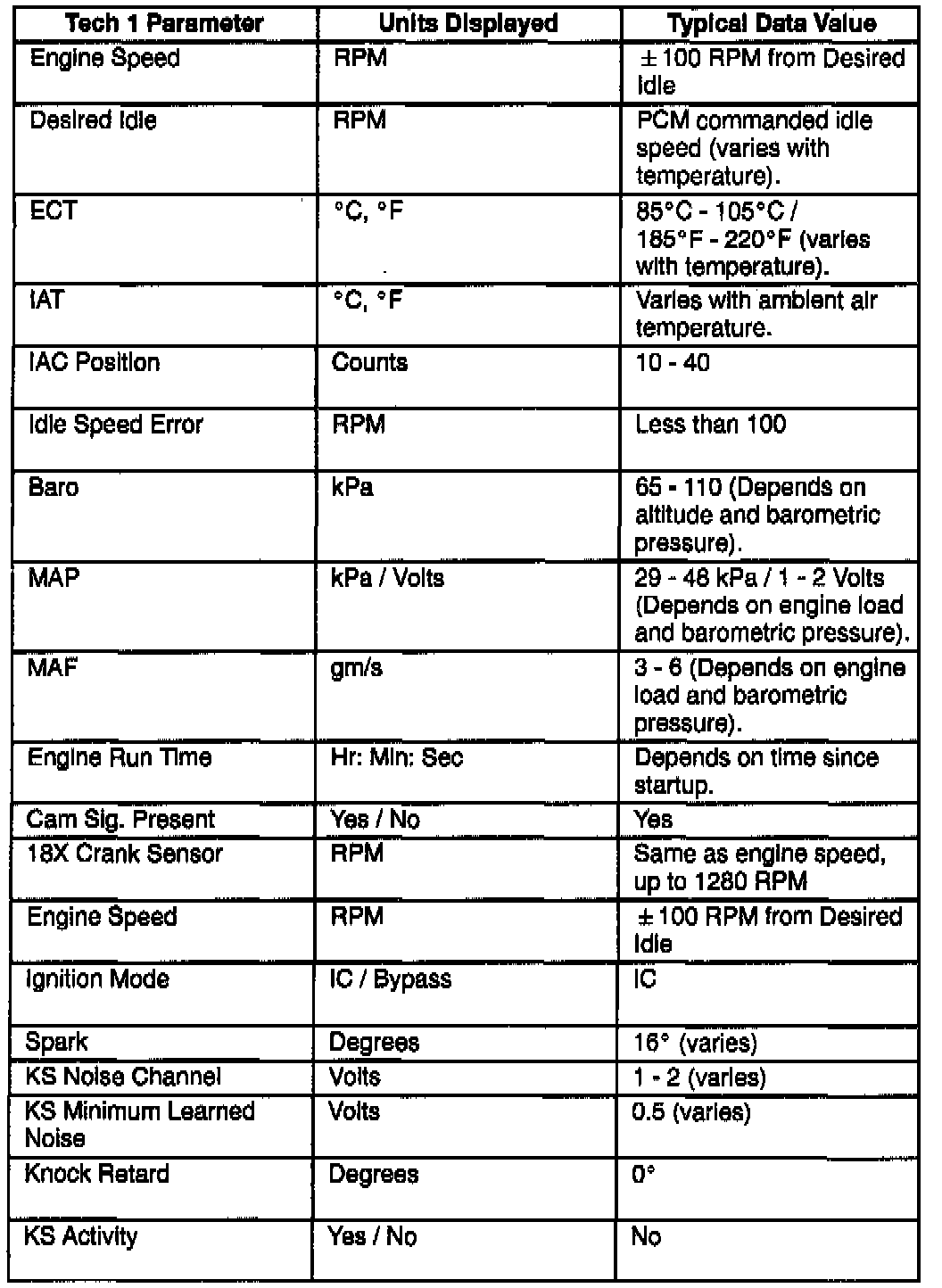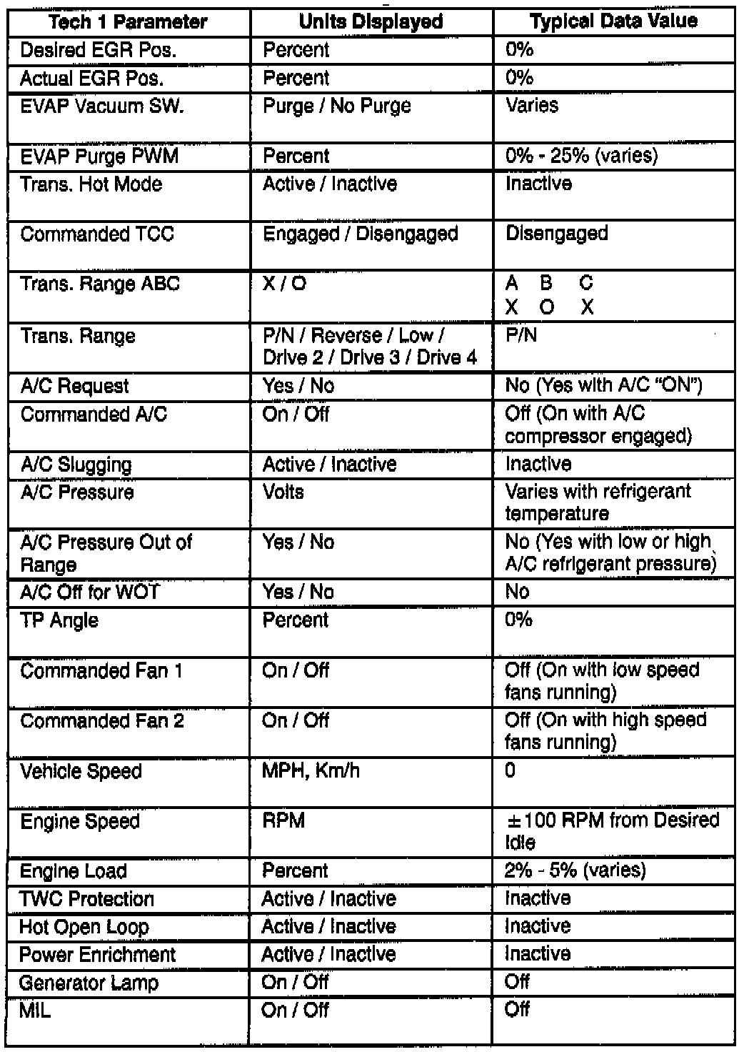 Scan Tool Data List
