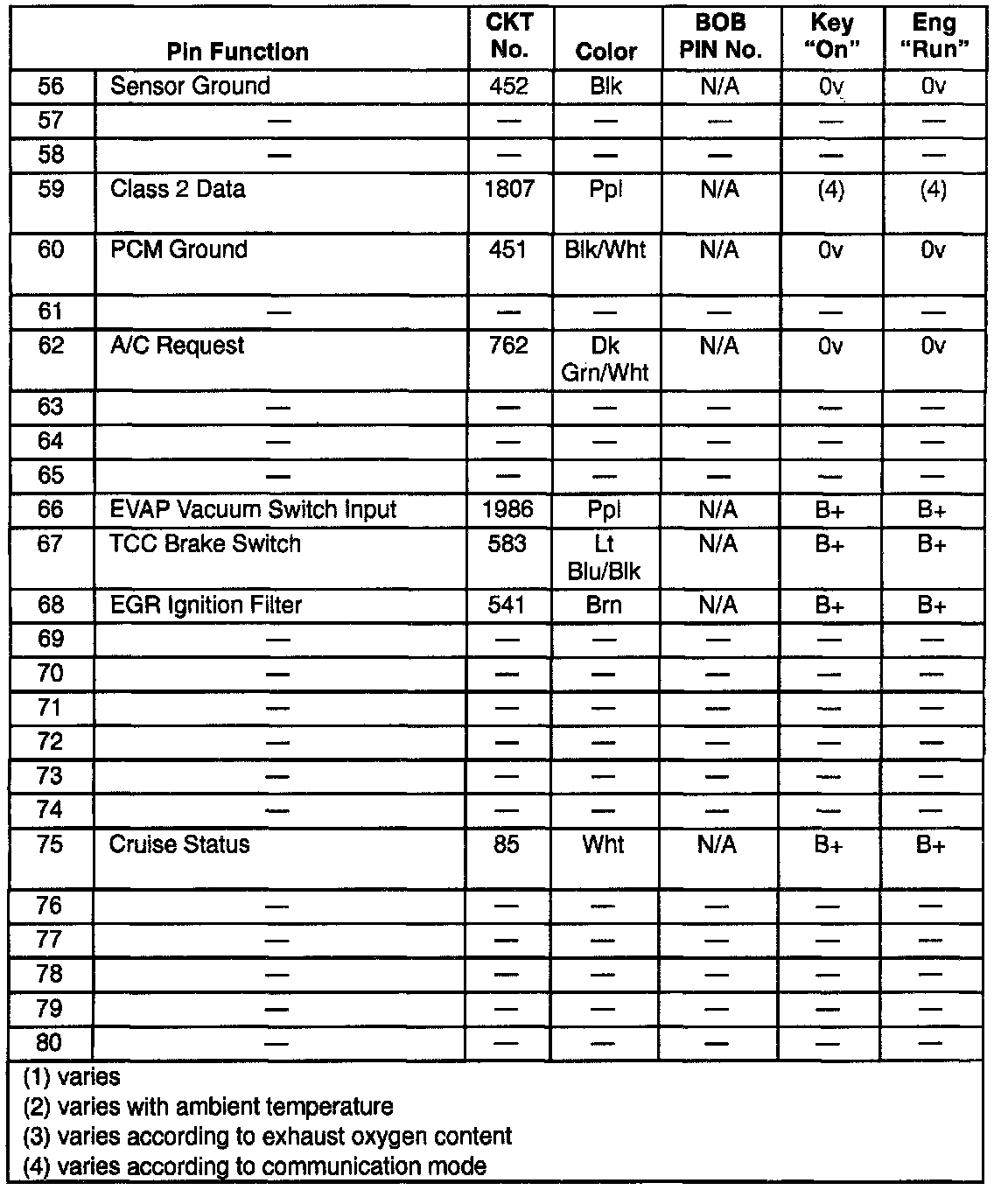 PCM 80-Way Blue Connector (J1) Details (Part 3 Of 3):