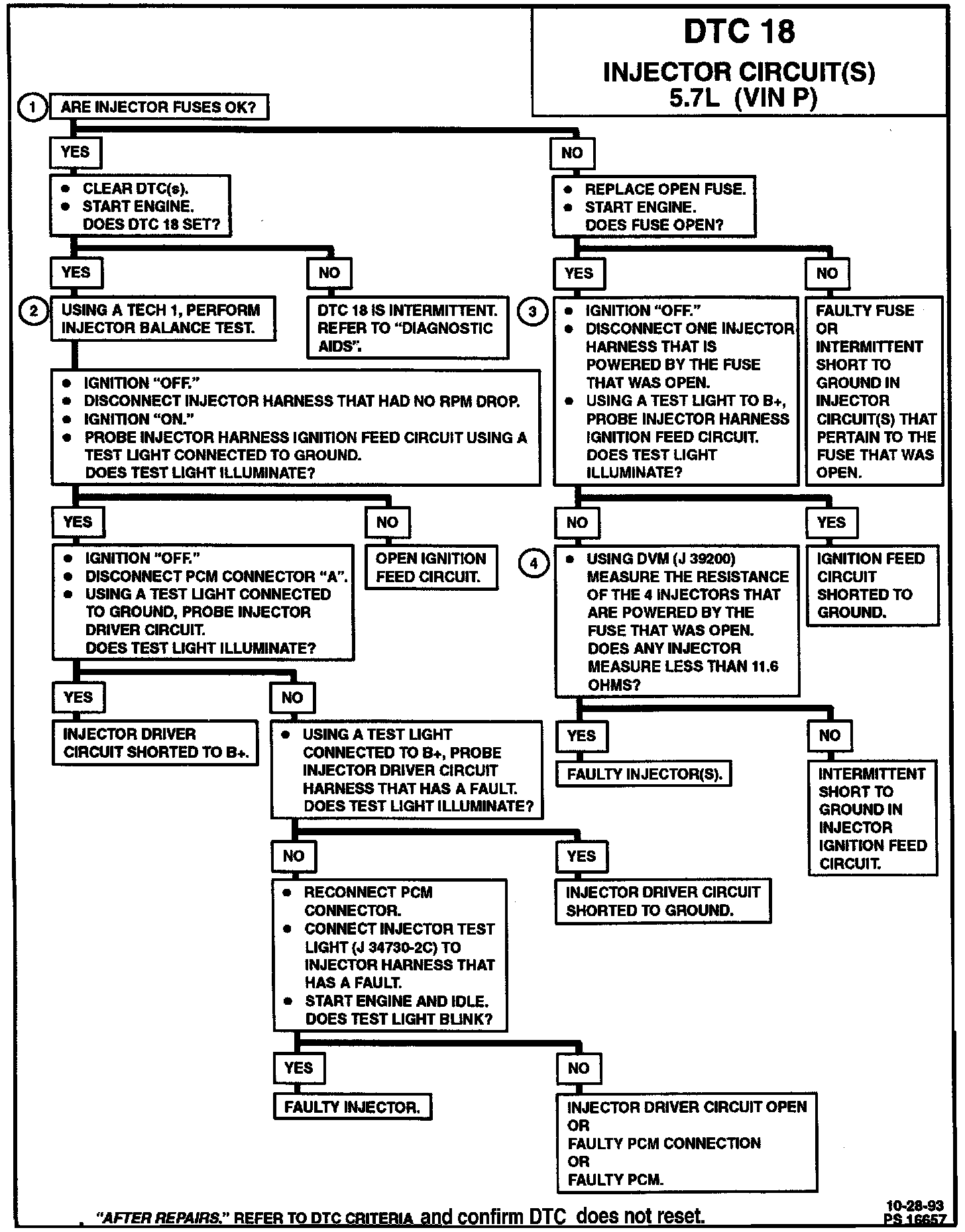 If an injector is disconnected and then reconnected while the engine is operating, the injector driver will be disabled for a predetermined time and a DTC 18 will set. When the driver is disabled, an engine miss will be apparent.