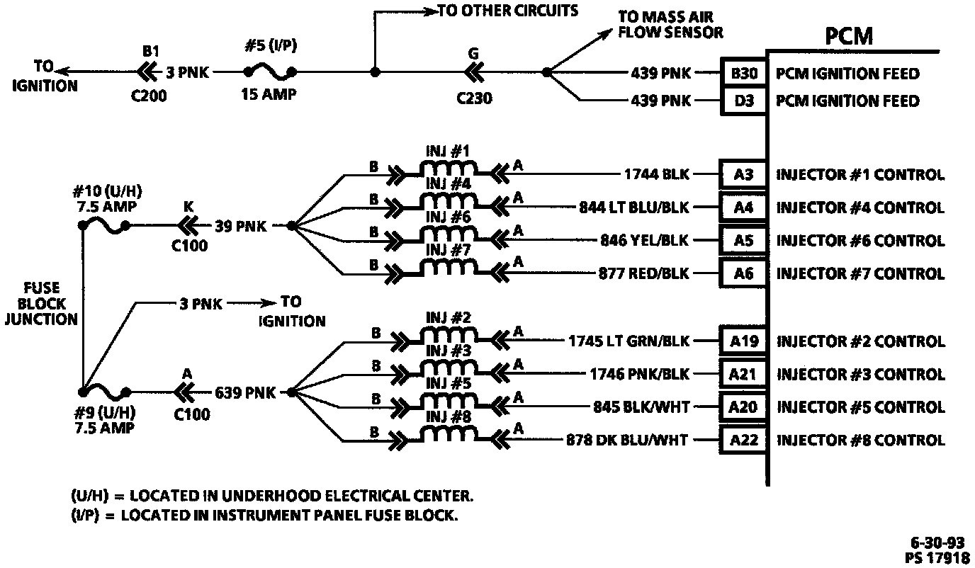 3. Fuse #9 feeds injectors 2, 3, 5, 8, and fuse #10 feeds injectors 1, 4, 6, 7.