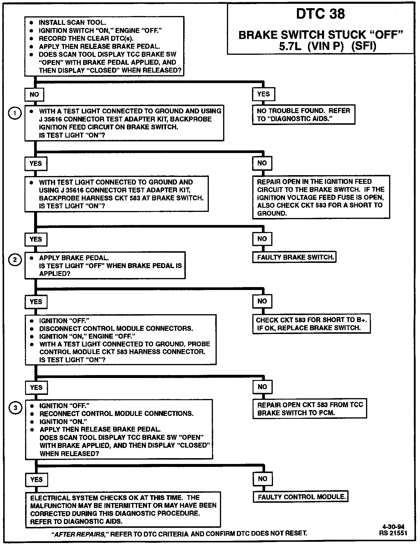 Diagnostic Trouble Code (DTC) 38 Brake Switch Stuck "OFF":